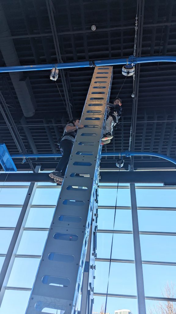 It was Malachi’s 8th birthday so we wanted to find something fun. There were 3 school field trips… Kids were EVERYWHERE. The climbing center was fun.