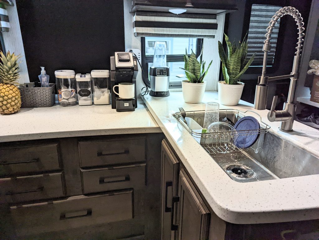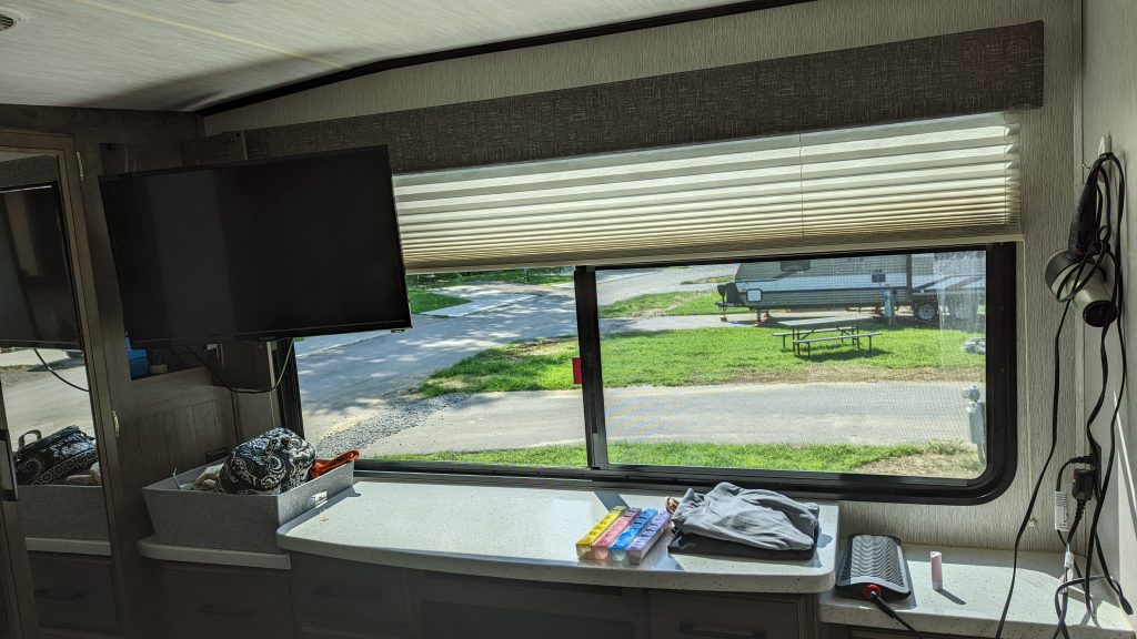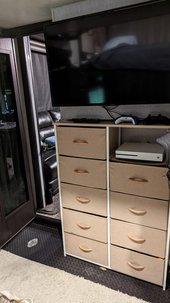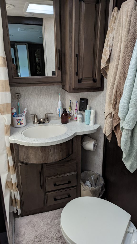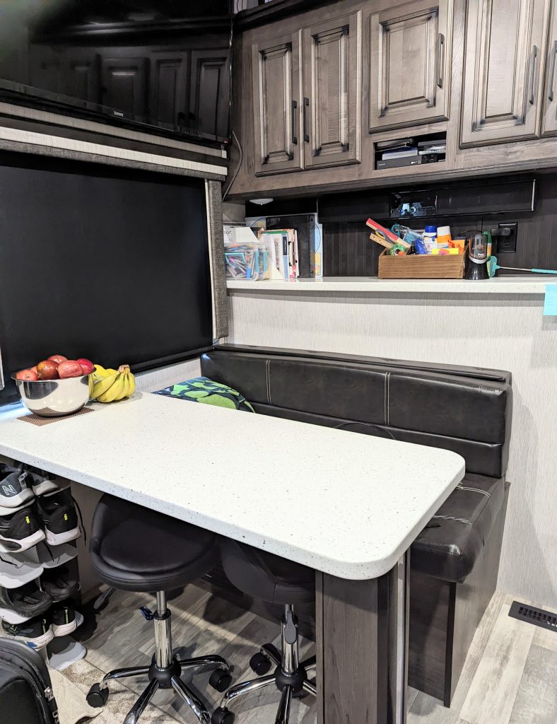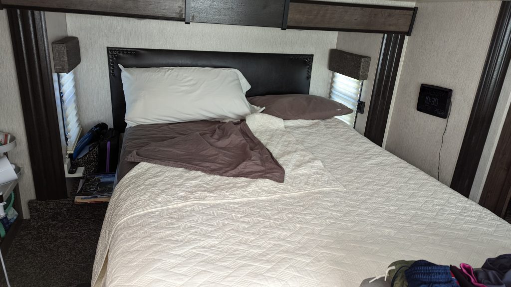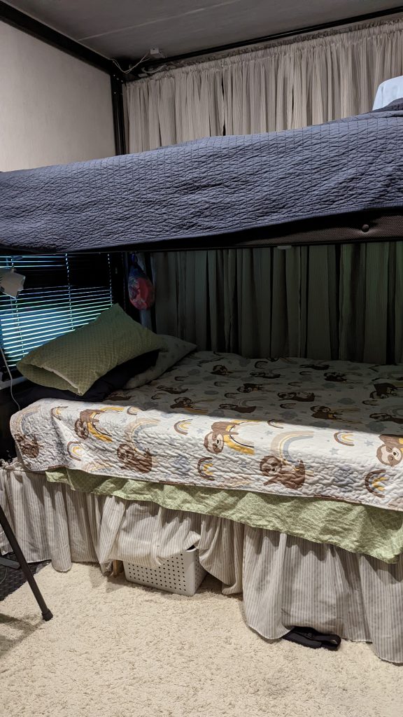 Ark I(One) This is Ark I our home on the road as we travel the country. 2020 Heartland Cyclone 4007 HD edition. reclining sofa dining table kitchen kitchen Fridge Garage bunk. Homemade platform bed with storage(below). Garage bunk bed Garage bunk entrance view Caleb’s clothes storage Anna’s and Kai’s clothes storage. Garage bathroom Shower Master bathroom Master bedroom window Closet and washer/dryer king size master bed