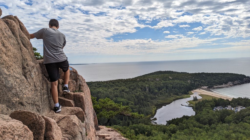 Caleb and I decided to climb up Mt Beehive. It was fun and once you go up there are areas of vertical climb on rails and no side guards.