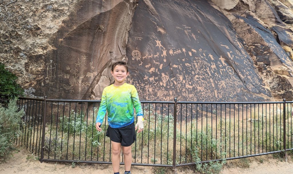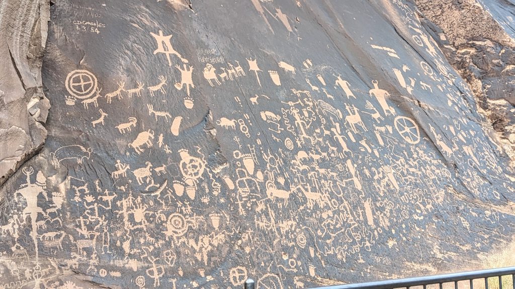 On the way out of the park, we stopped at the petroglyph rock… Pretty cool.