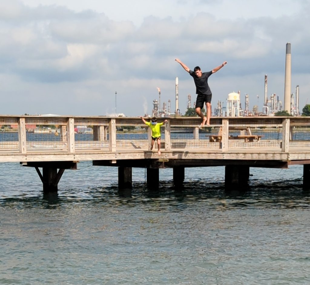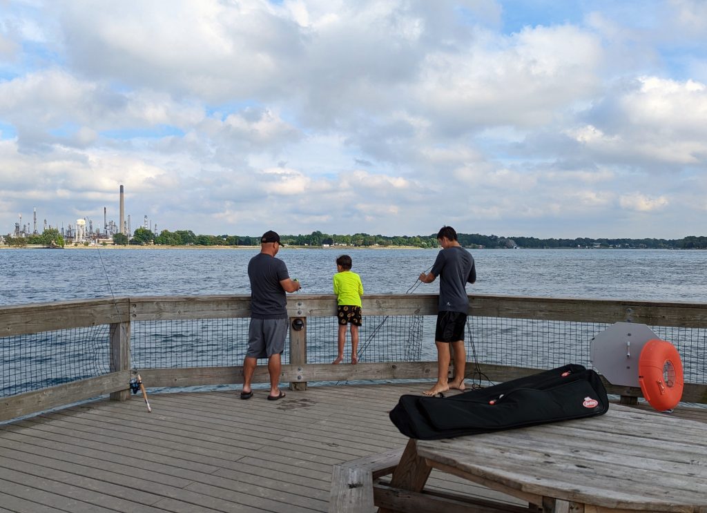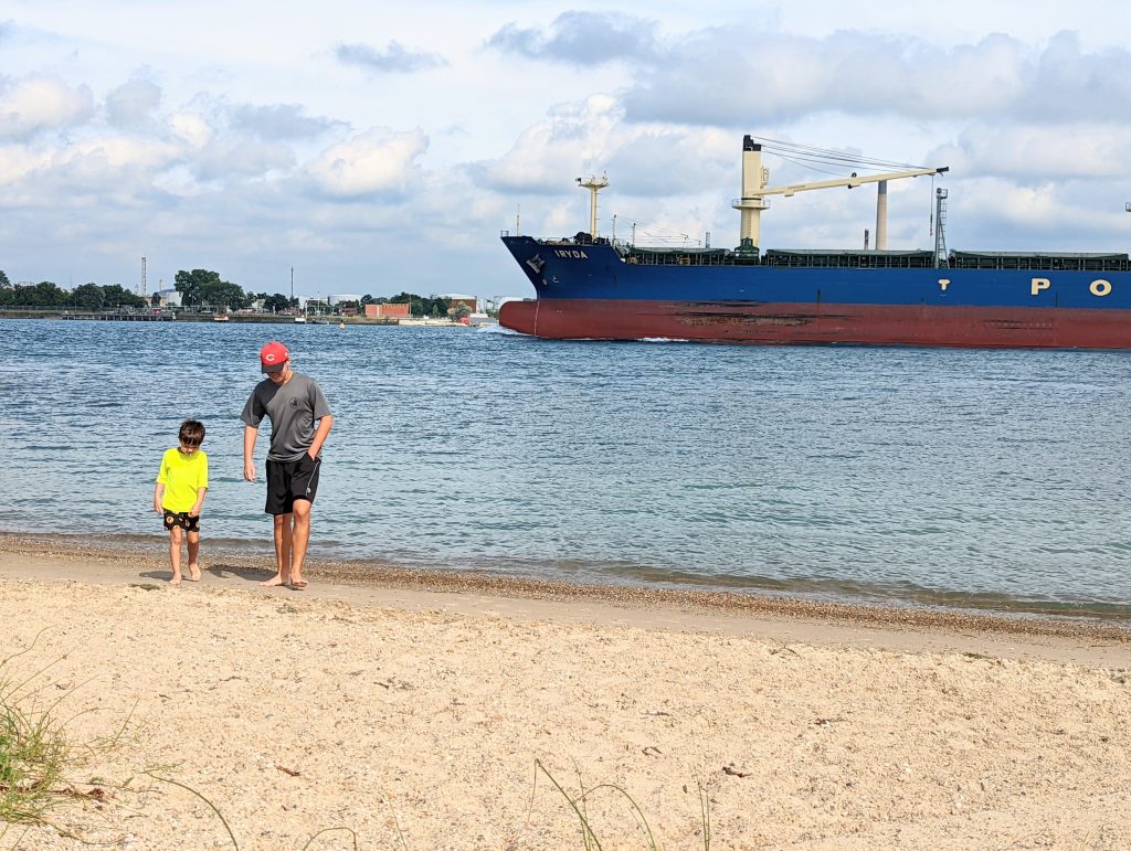 We went out for an evening of swimming, fishing, and bike riding. The plan was to go to a different beach this morning and go to Chrysler Beach this evening as a family, but it rained most of the day today so we combined all of it at one place.