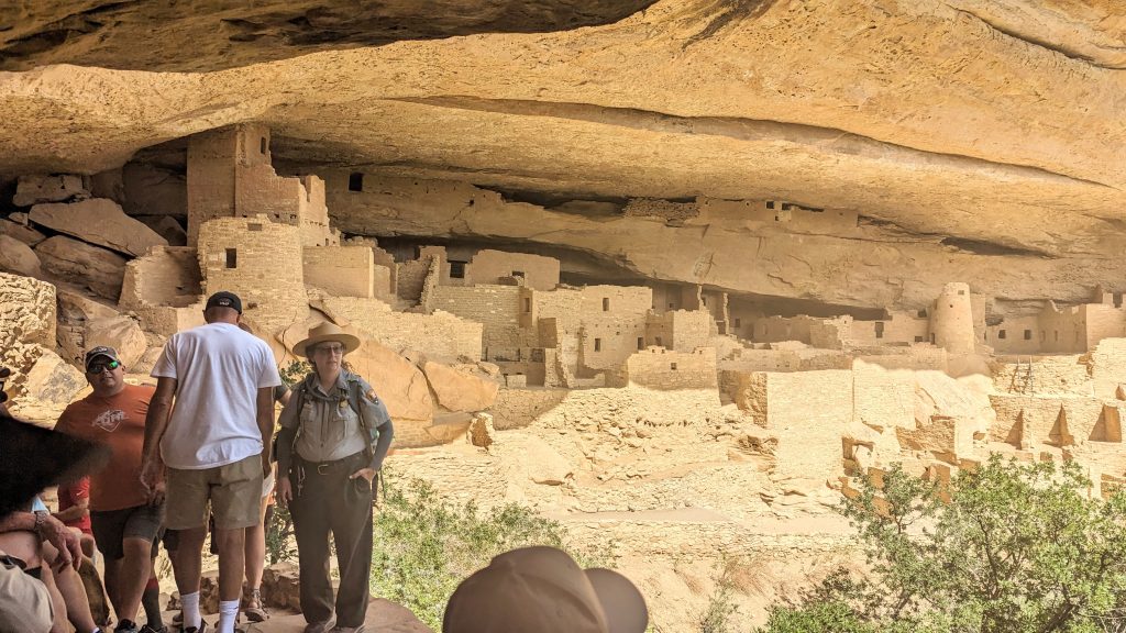 We did ranger tour of the Pueblo Cliff Palace. Many families would have lived in this area. It is believed that the top portions were for storage. They believe the Pueblo were very successful farmers. We love when things happen in the late afternoon and Sean can join us.