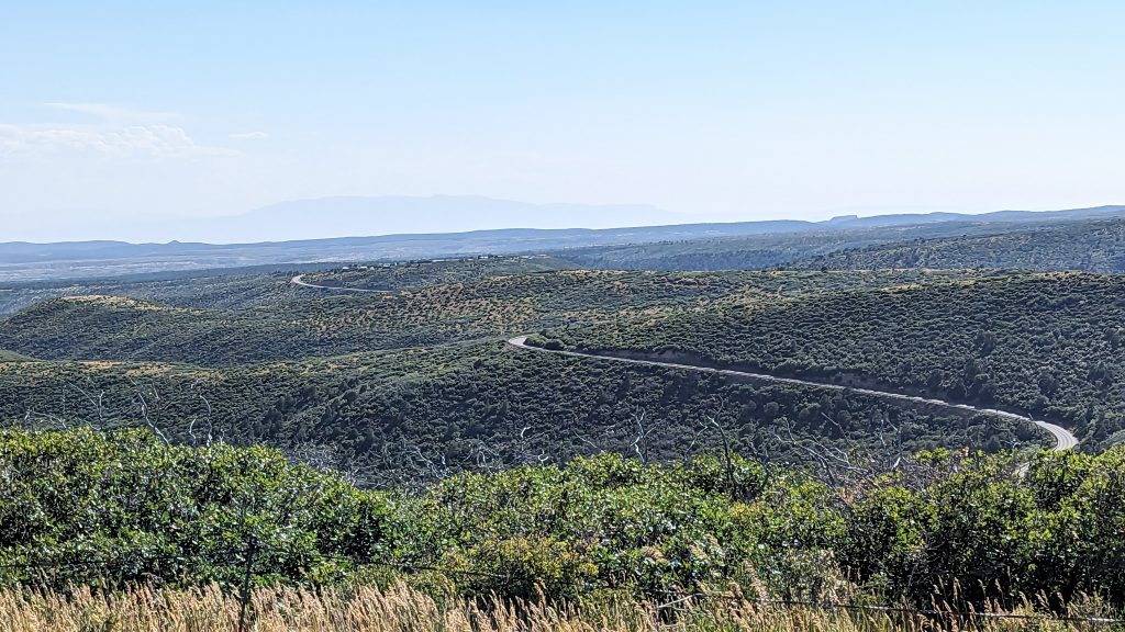 Seeing the city and the park from a bird’s eye view was amazing. It was super windy at the top. We could see the edge of the Rocky Mountains. You can also see the roads at the top of the Mesa that we drove along. I wish you could see the winding mountain roads, too.
