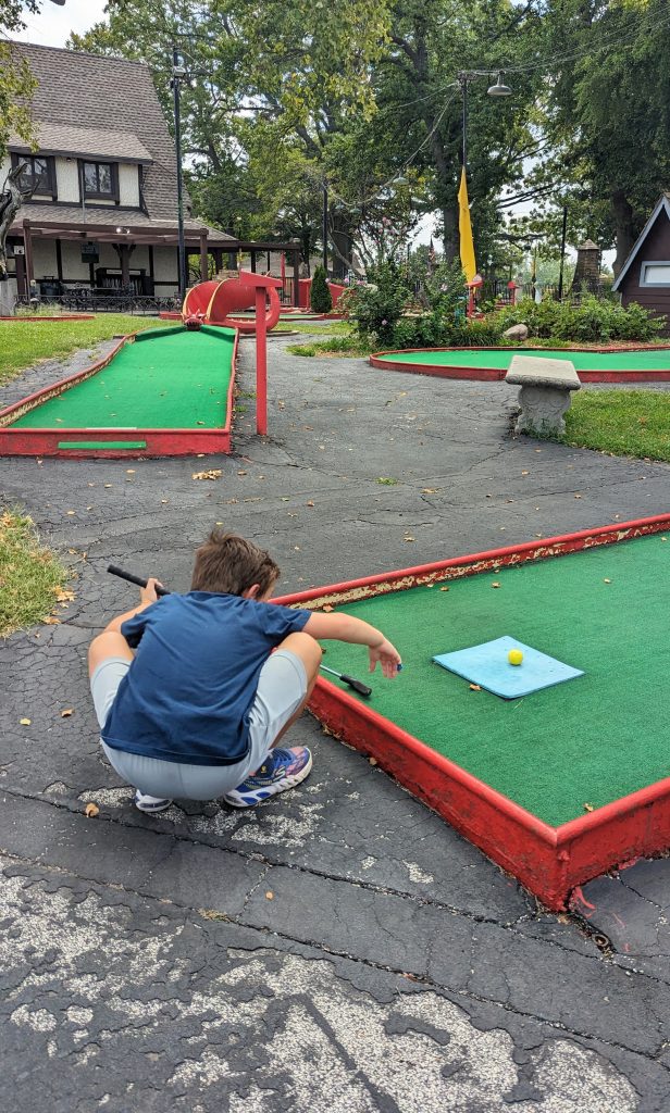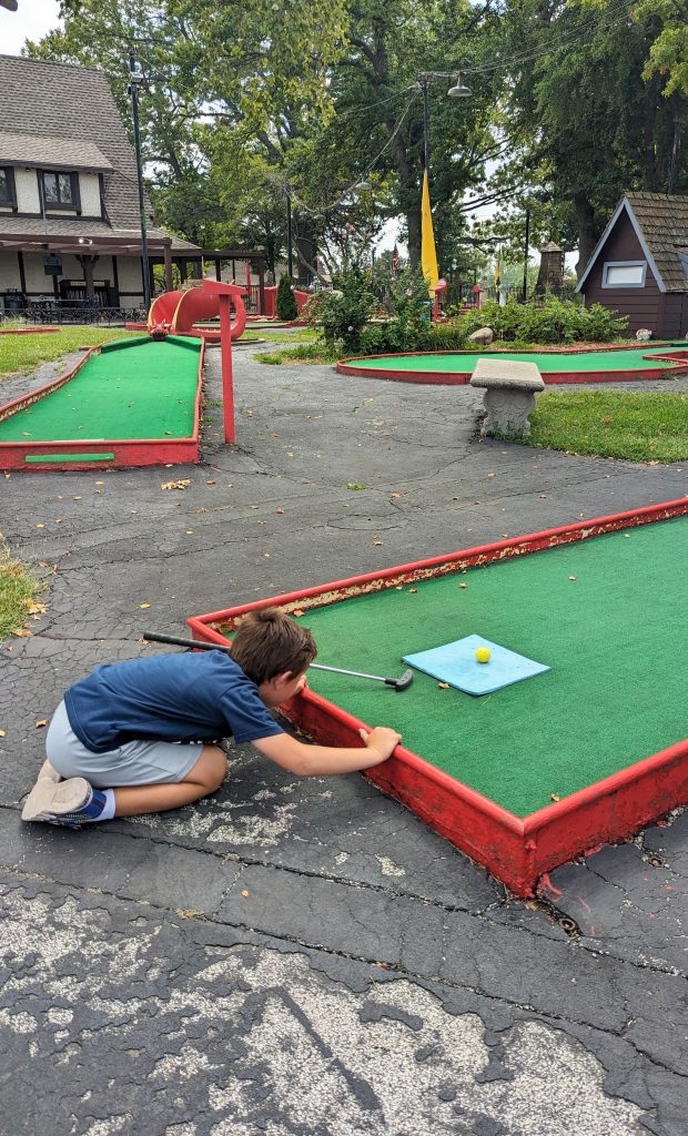 During our time in the northeast, many of the RV parks had mini-golf options. Because Malachi was on a kick, we even went out to various places to play. We haven’t had many mini-golf spots in the Southwest since our RV park in Texas. We decided to spend a little time having fun near Kansas City, Missouri. It was HOT!! We were supposed to ride go-karts but they were closed until the weekends but school started up this week….they gave us extra tokens.