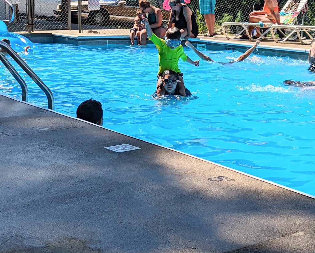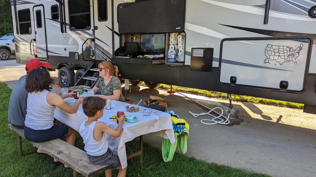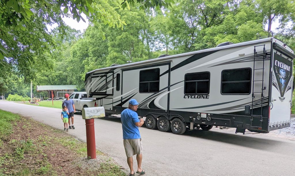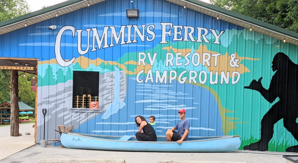 Kentucky RV park we stayed. Cummins had a Sasquatch theme throughout the area. The Kentucky River flowed down the side of the campground. The RV park got full on the weekends and had a great family feel.
