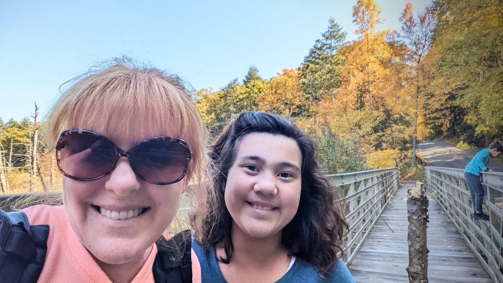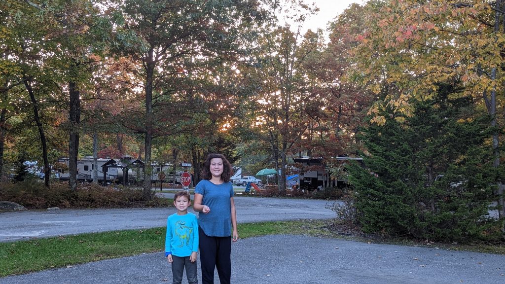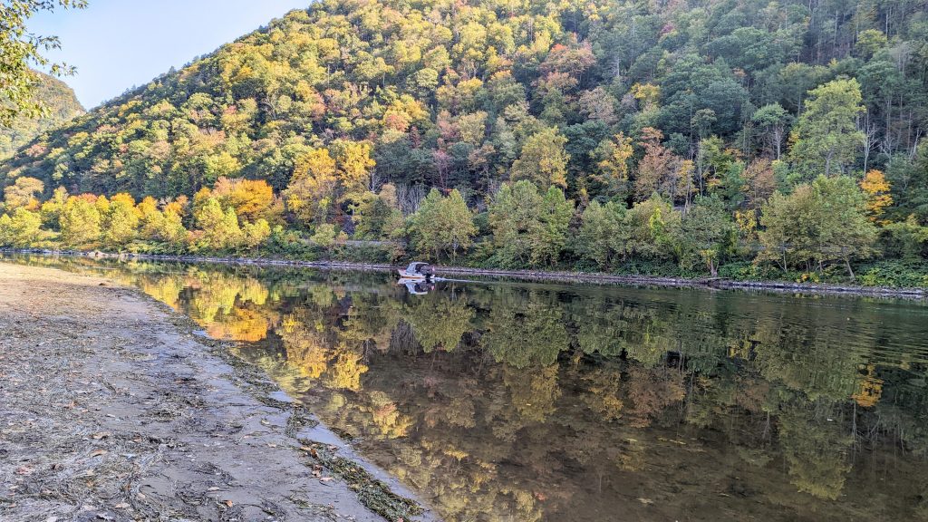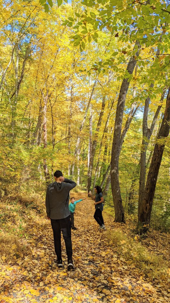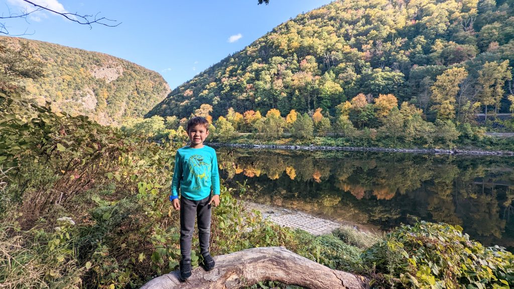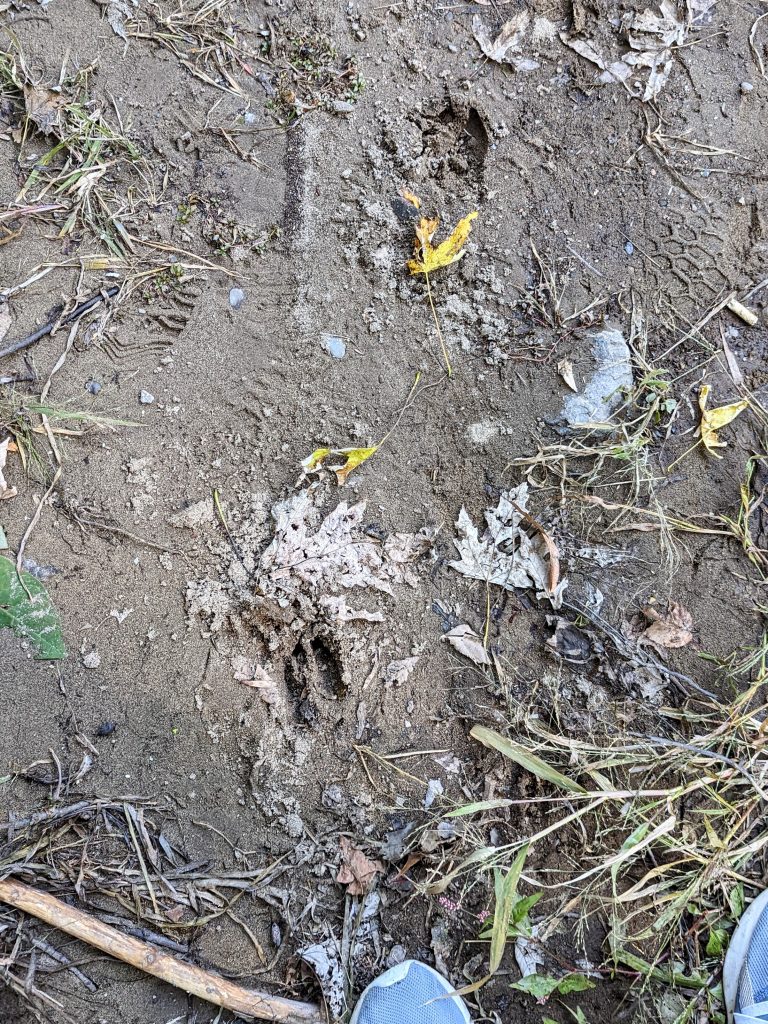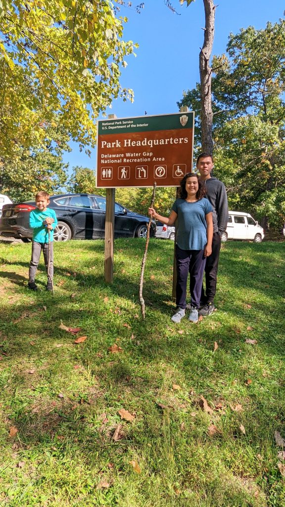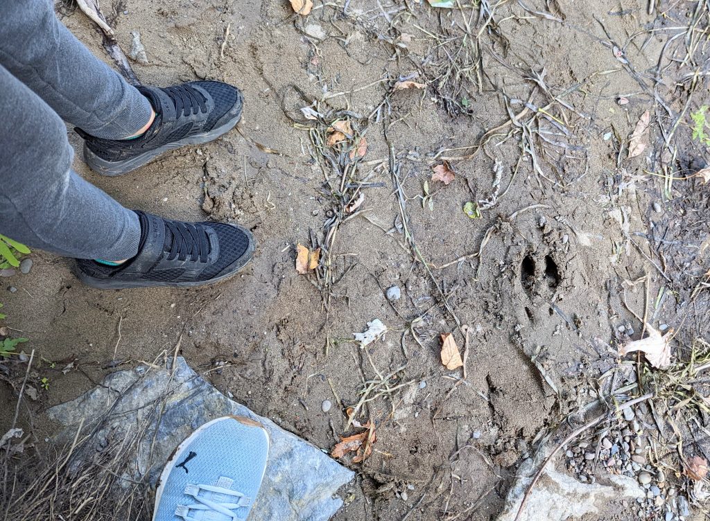 Fall is here! We enjoyed walking some trails and seeing where the Delaware River created a gap between mountains. In this area, the river separates Pennsylvania from New Jersey. We visited an area of the park that is in Pennsylvania and one that is in New Jersey. We saw some tracks… mostly deer.
