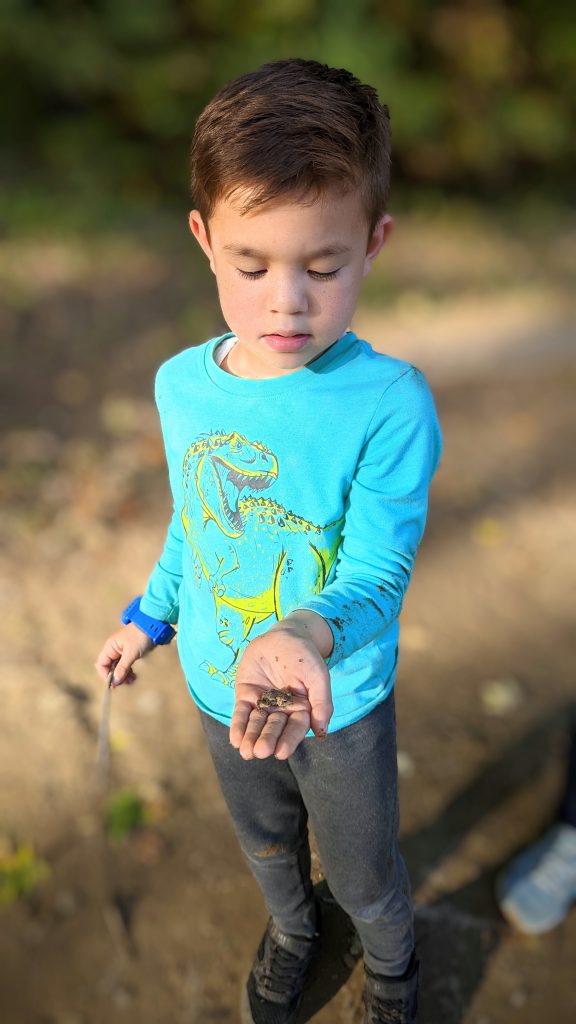 Convinced their dad to keep the ๐Ÿธ. We carried that frog home for 45 minutes in a small plastic toy holder.