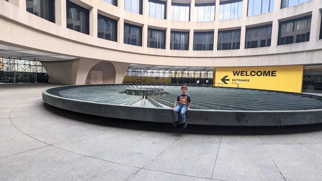 Eisenhower Memorial and Hirshhorn Museum Posted on 11/02/202211/05/2022 We ended the day walking through the Eisenhower memorial and the sculpture museum. Snack break for morale lift for the two younger ones Back at the metro and headed home
