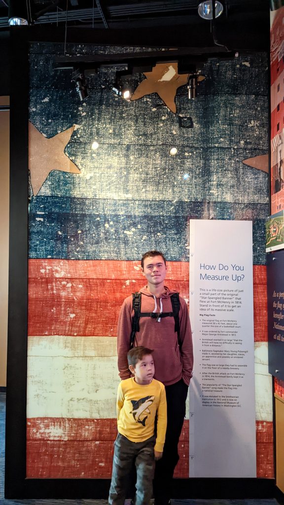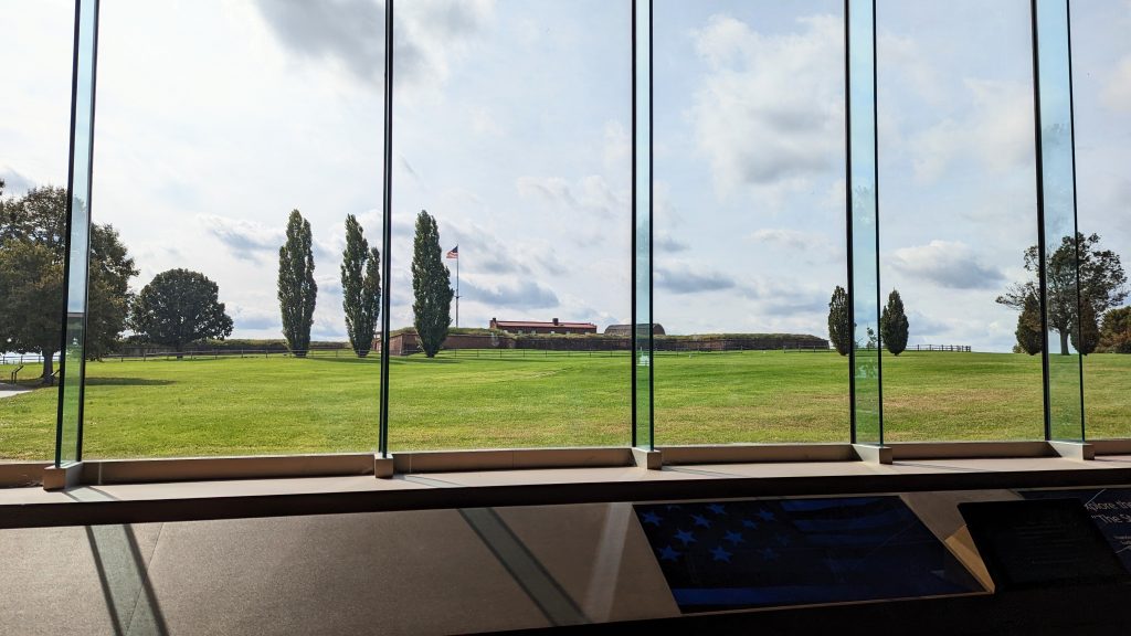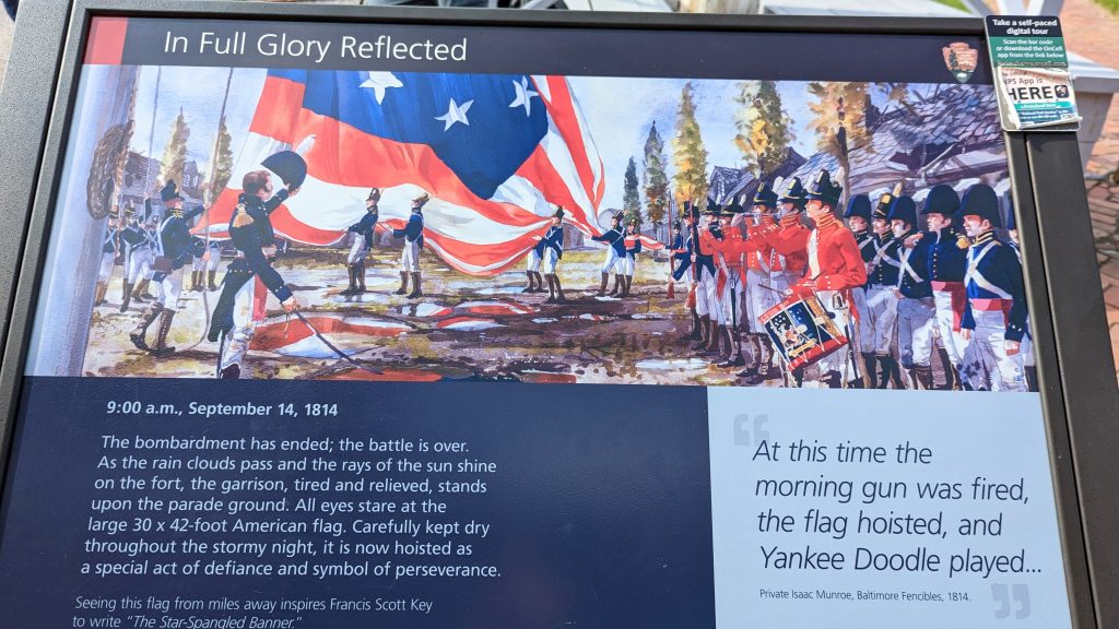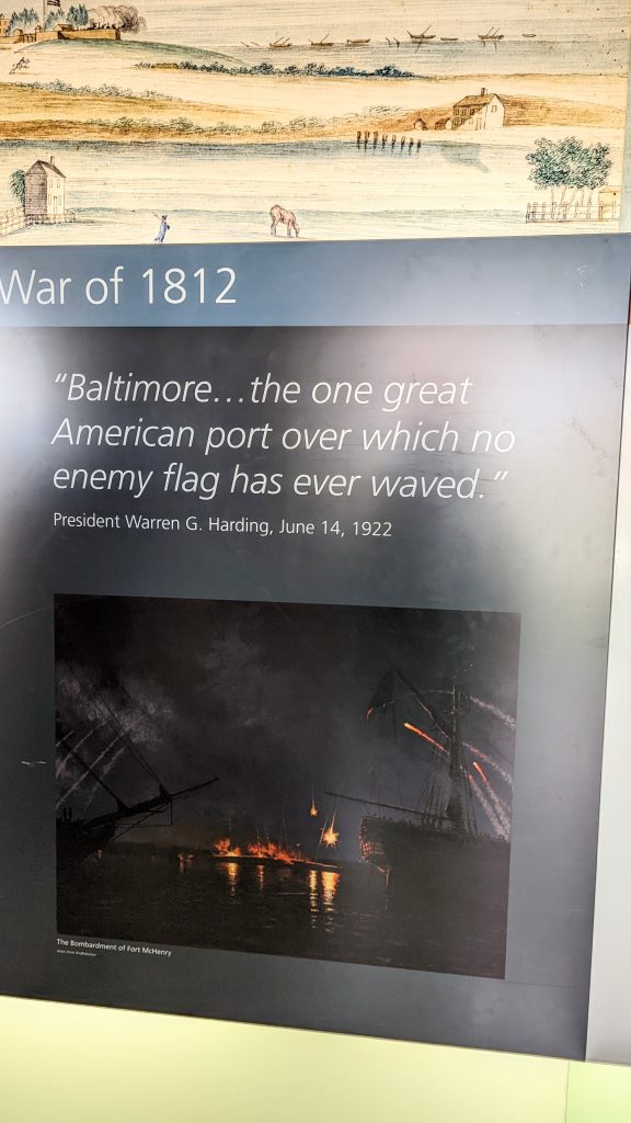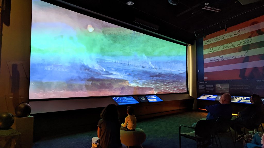 We had a great day at Fort McHenry. Almost all national park places have a video to tell you about the location. This video tops them all… The video finishes with the projector screen rising and the flag and fort in the background. Pretty cool.