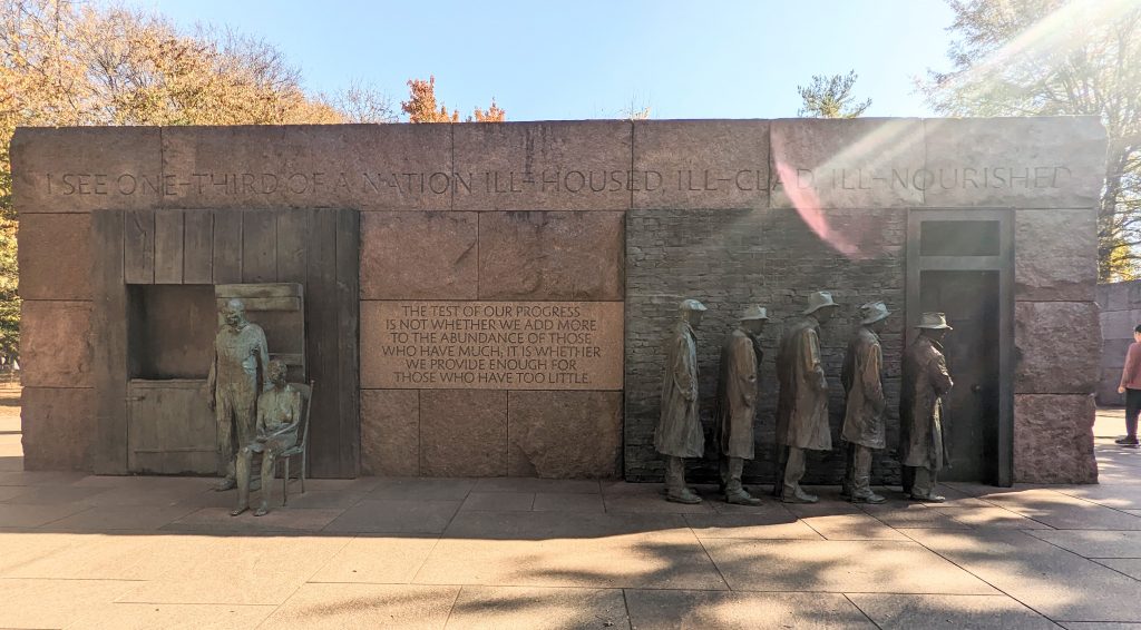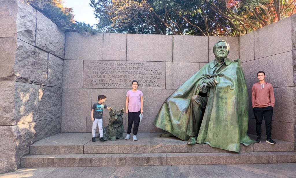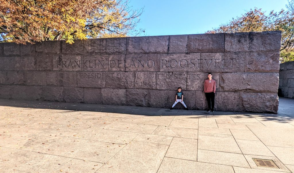 Franklin D Roosevelt Monument Posted on 11/03/202211/05/2022 Caleb is learning about him in History now. It was fun to watch him talk us through the information.