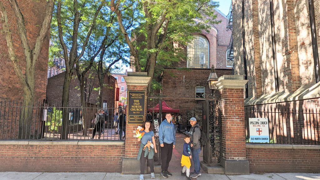 We stopped to get some food along the trail. We chose a Social Studies for Anna where she learns about each state. She has really learned a lot. She read about the Union Oyster House Restaurant and the first underground subway in the US, which are in Boston. So, we included those on the Freedom Trail.