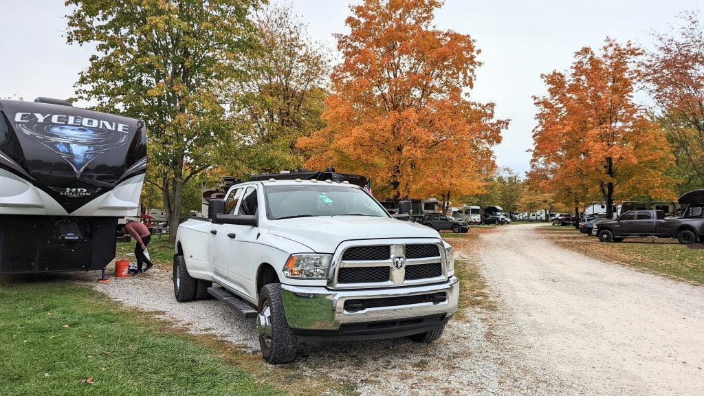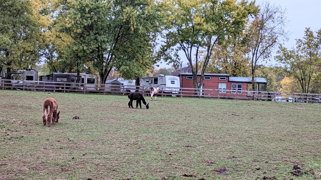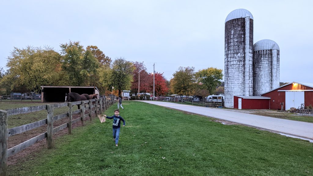 This RV park has a working farm. The kids can feed them; they had a great time with Sean. The trees are all changing, and we are nestled among many farms in this area. It’s beautiful!