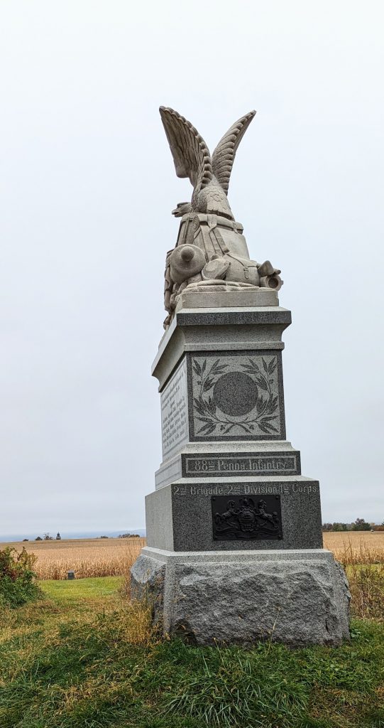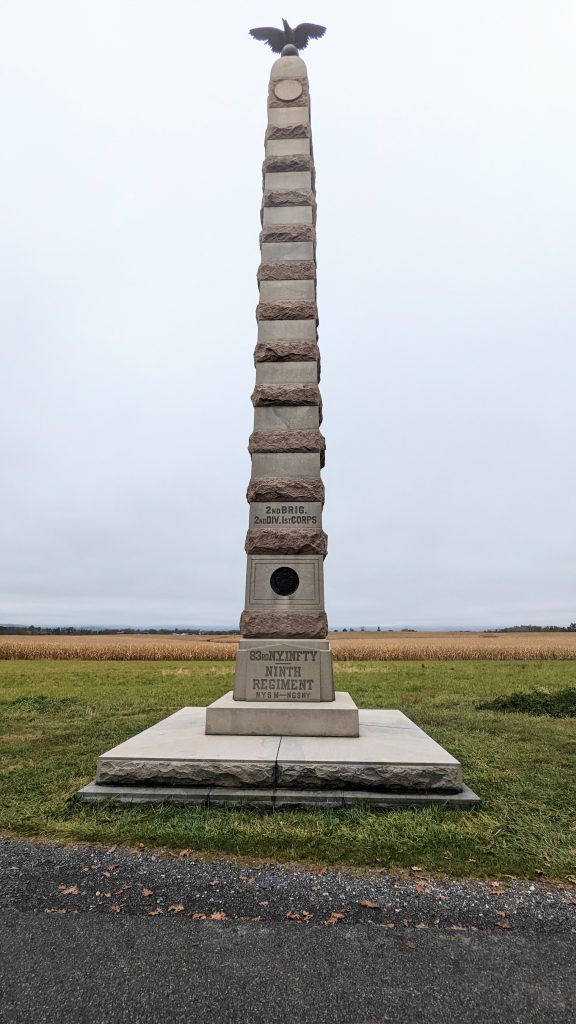 The park was full of monuments and memorials. And, the views were spectacular. Each state created a monument for soldiers from their state. And, various infantries were on monuments as well
