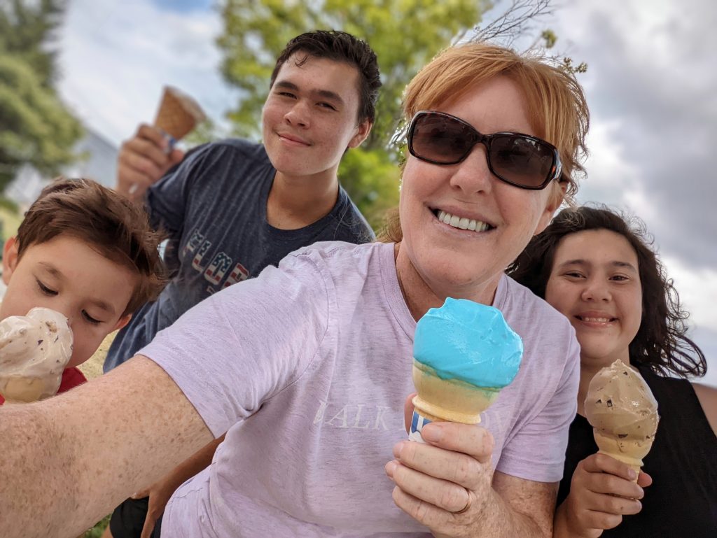 We decided to stop by a lighthouse on the way home… It isn’t open to walk up, but it’s cute. We ended up eating at a quirky restaurant and getting ice cream. We packed the bikes to ride on the ferry to the island. We parked at the local grocer, unloaded and headed over on the ferry. We only made it to the park at the front of the island. Malachi did too many spins on the merry-go-round and Caleb’s bicycle started to malfunction. Malachi was miserable. We called Sean… And thankfully we had used bungee cords to hold extra clothes, so Sean walked us through fixing it work the bungee cords…so we could get back the mile to the truck.