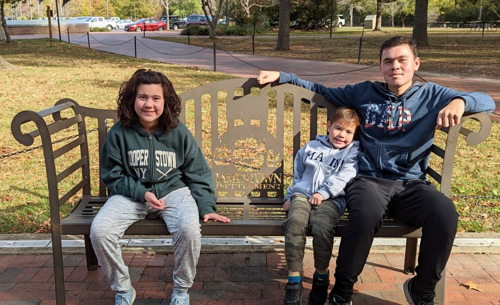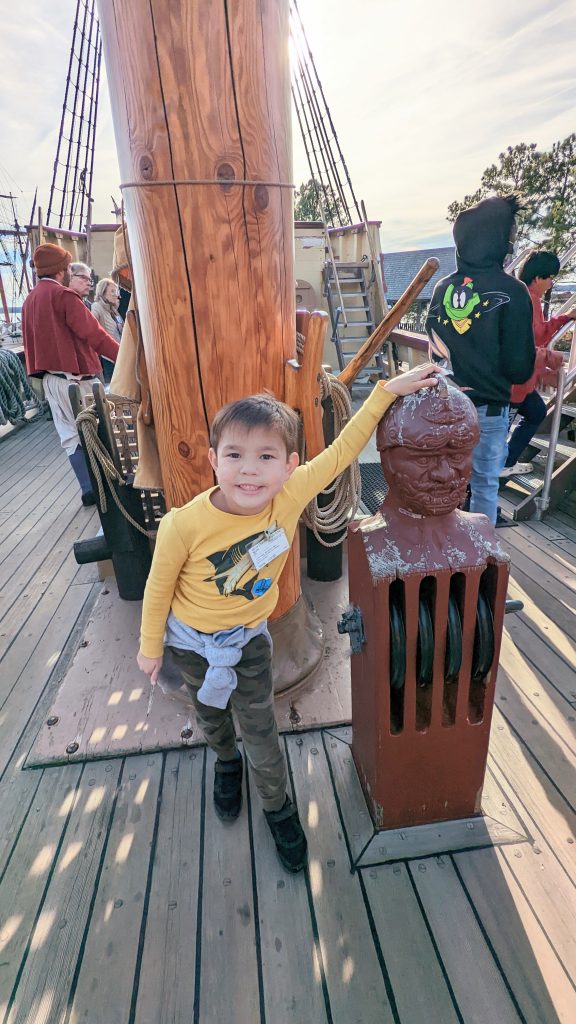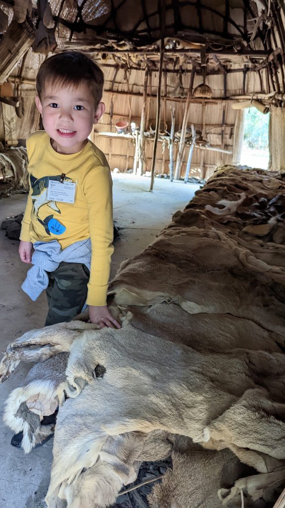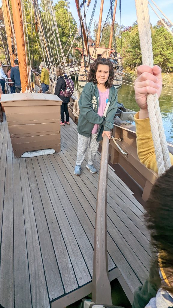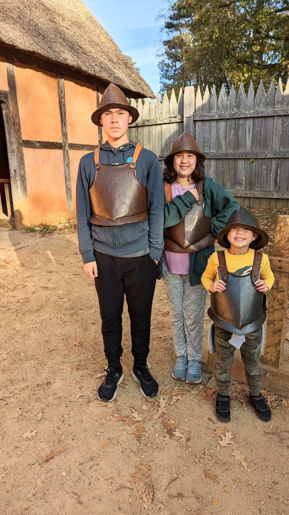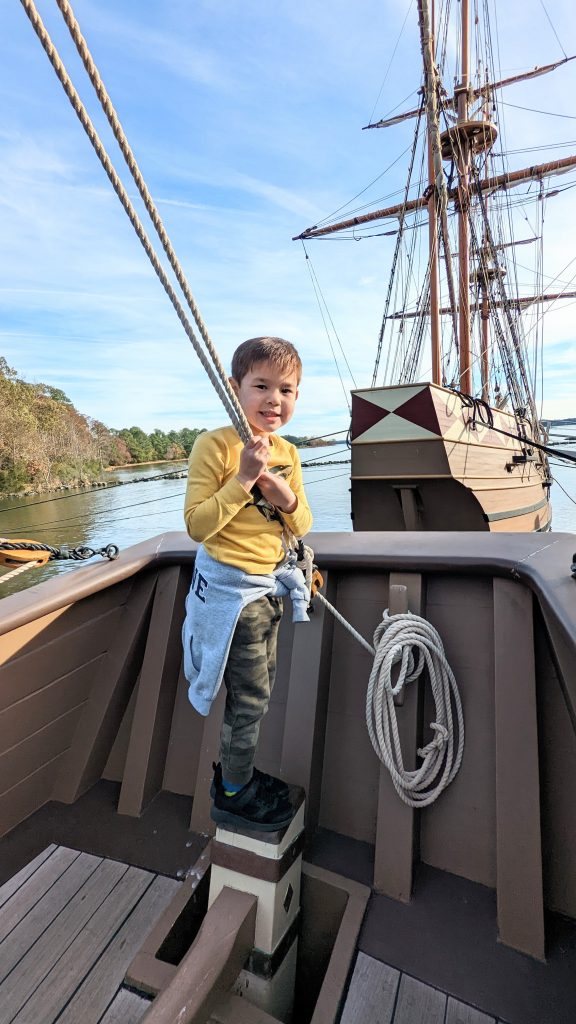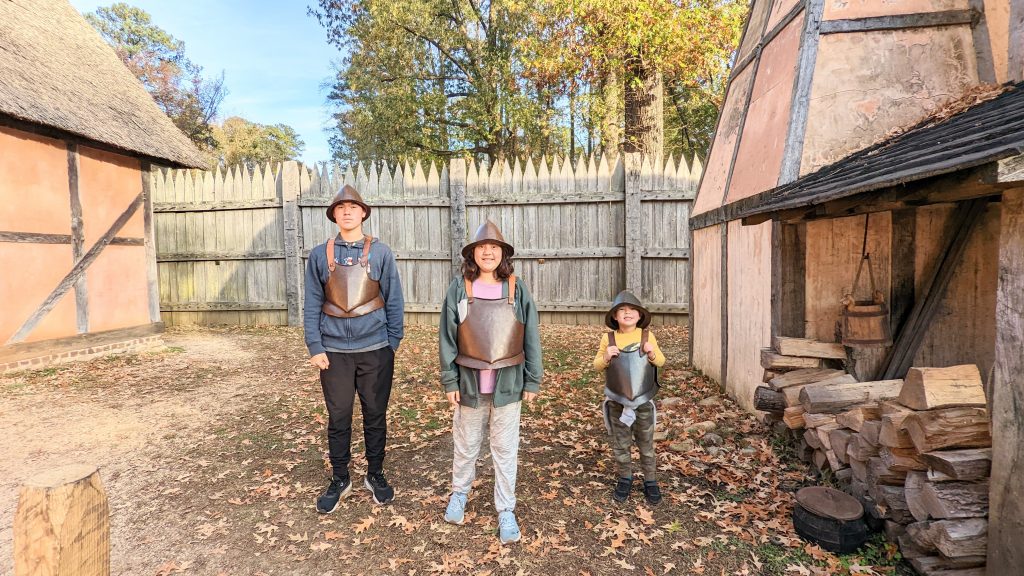 They have reconstructed the Jamestown settlement and the Native Americans’ living conditions. It was fun and hands-on for the kids. We saw full scale replica ships of the three ships the first settlers would have sailed over on.