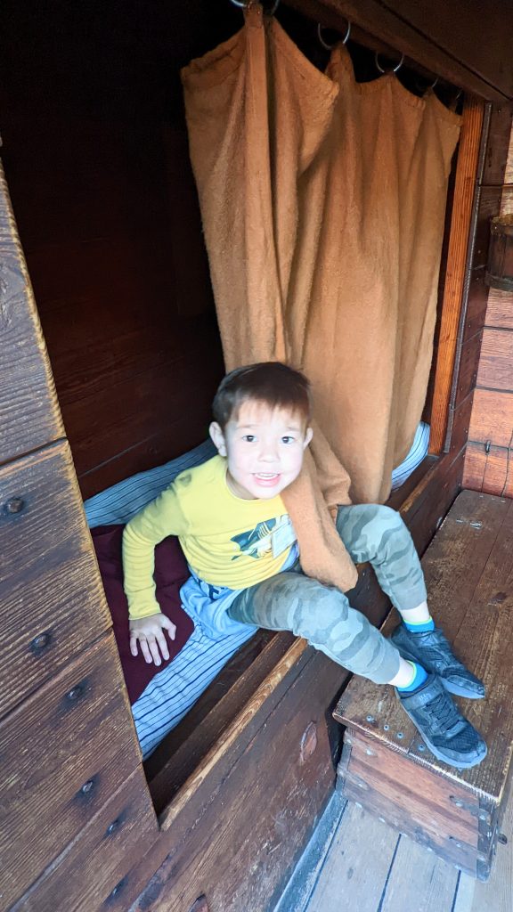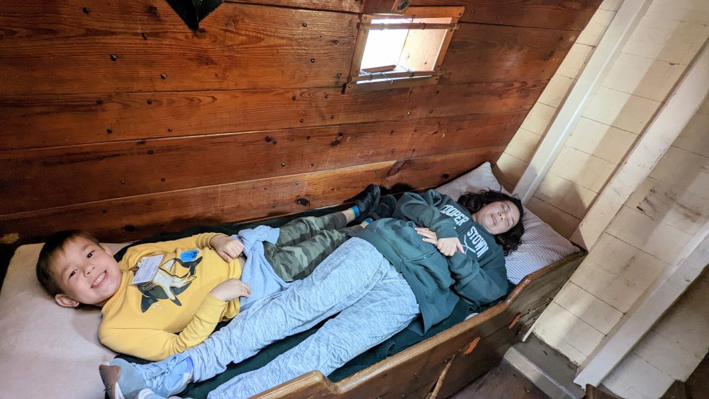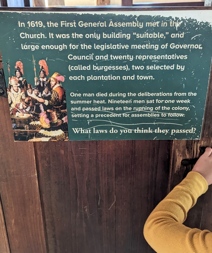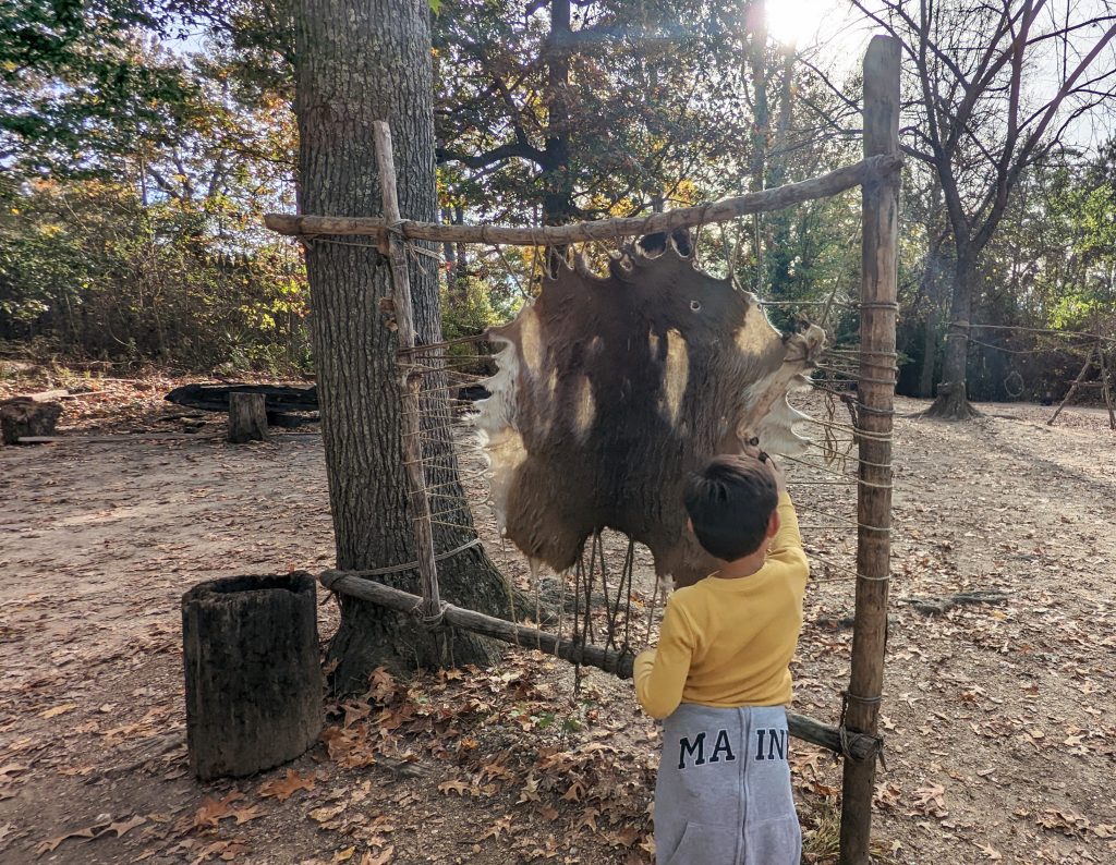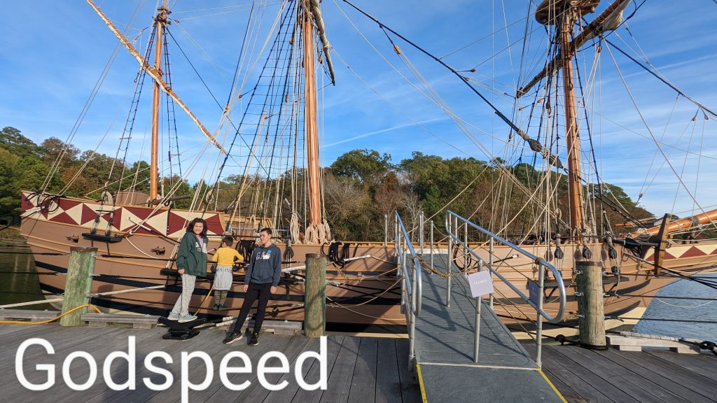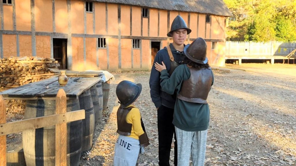 They have reconstructed the Jamestown settlement and the Native Americans’ living conditions. It was fun and hands-on for the kids. We saw full scale replica ships of the three ships the first settlers would have sailed over on.
