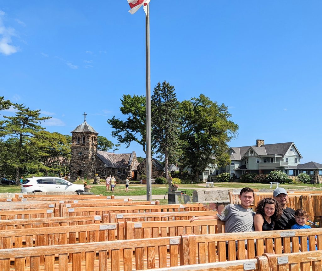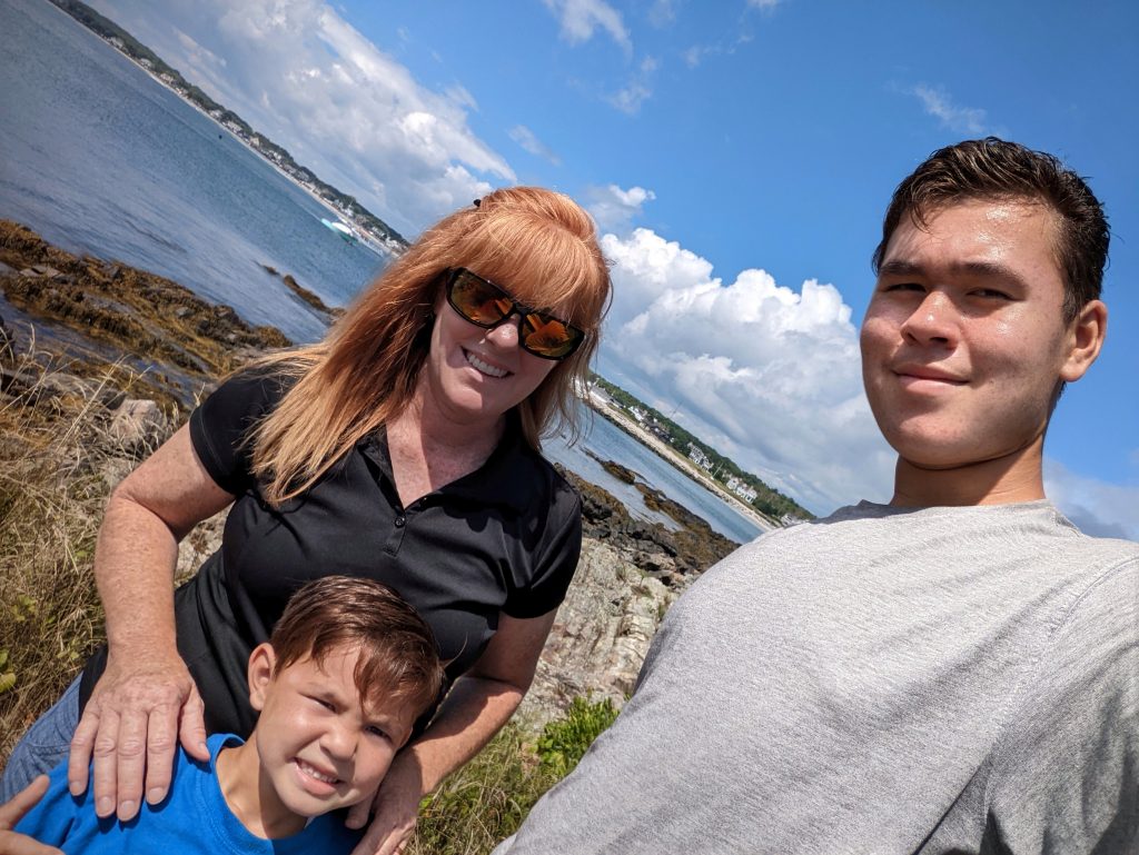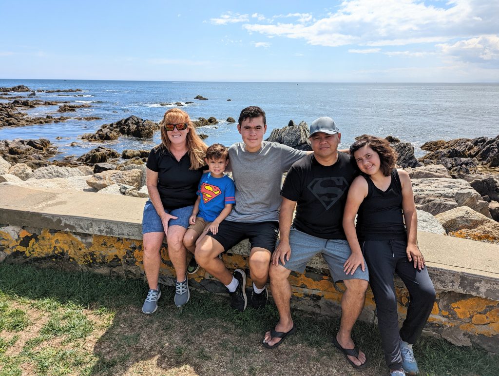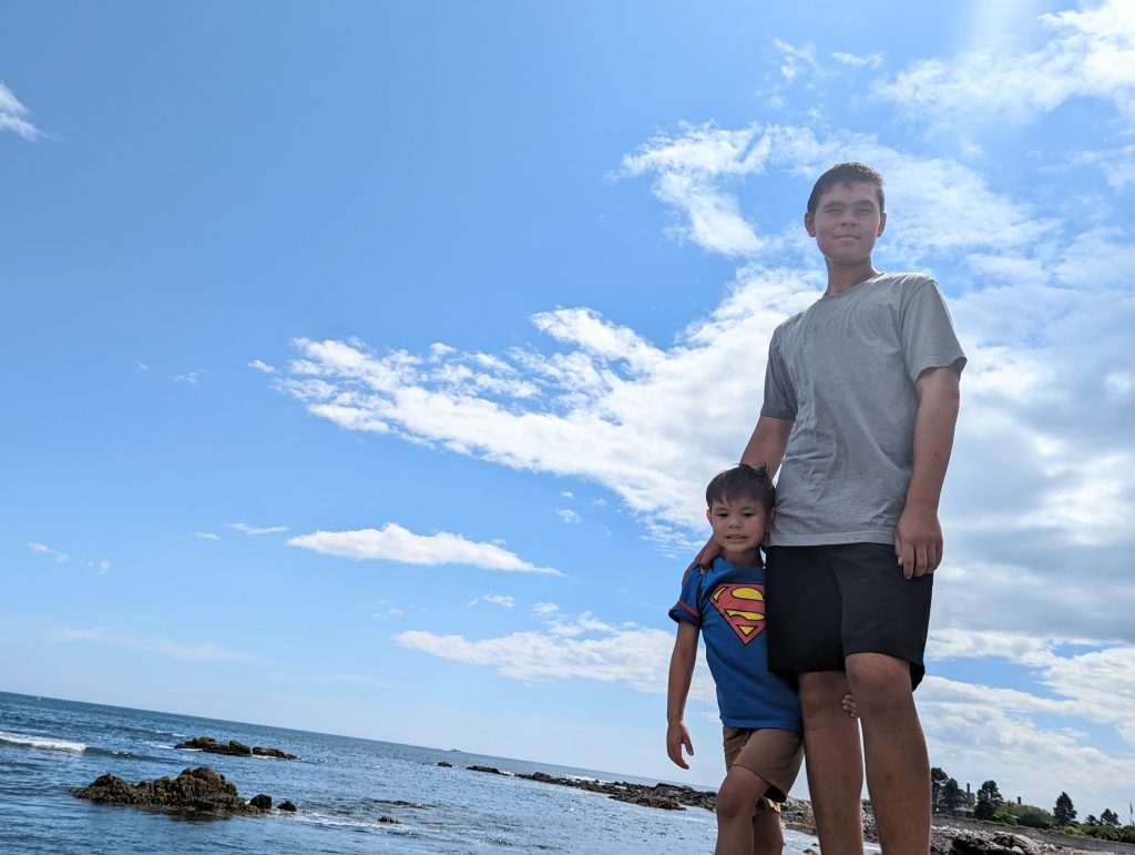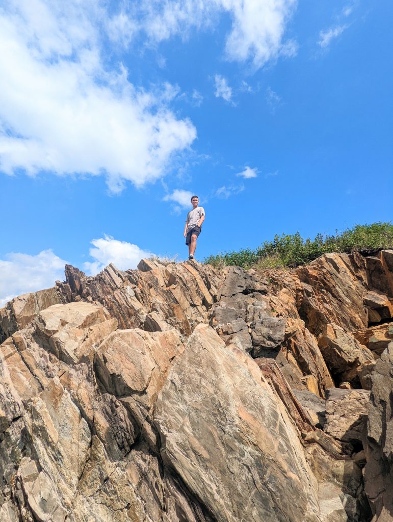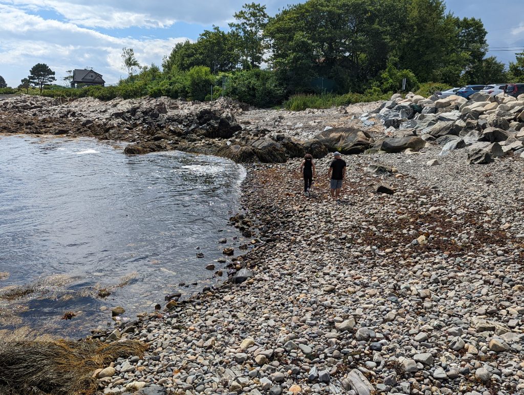 We went down Ocean Avenue. We found some rocks to climb to take in the view. Sean found some clams in the cleft of the rocks.