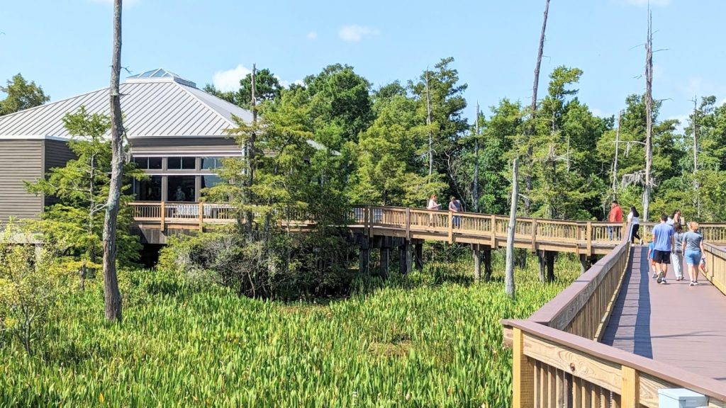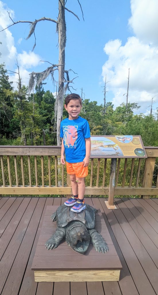 The Texas welcome center is amazing! It has a long boardwalk asking the Texas swamplands. We even saw a gator nest…