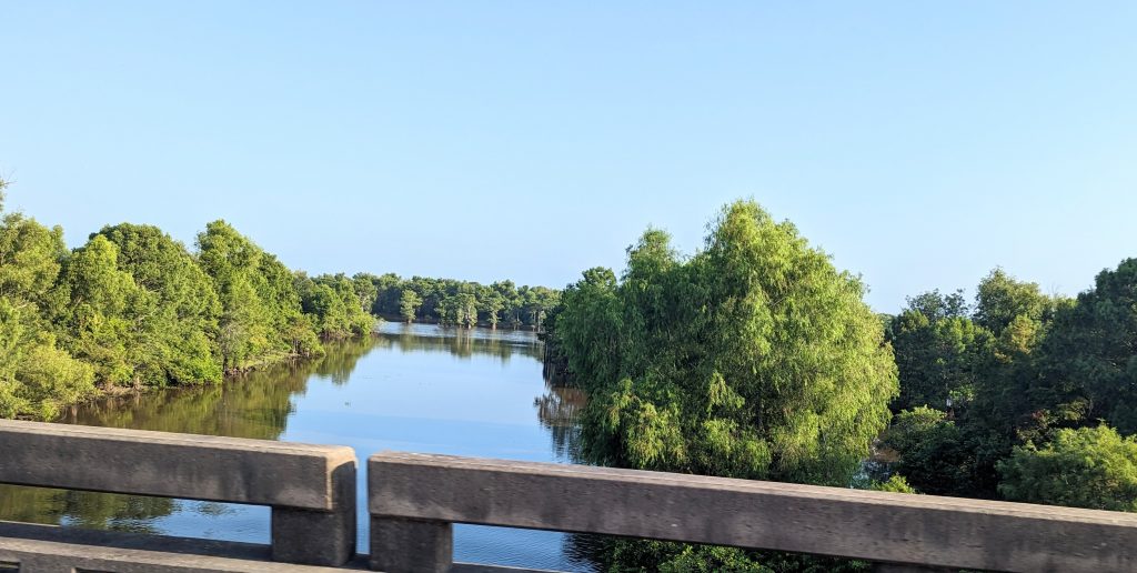 Malachi has had us watch Gator Boys (Everglades and some Mississippi) and Guardian of the Glades (Everglades). Sean puts on Swamp People sometimes (LA Bayou). I’ve learned a lot from those shows!! On this car ride, we have seen the Mississippi mud and the Louisiana bayou.