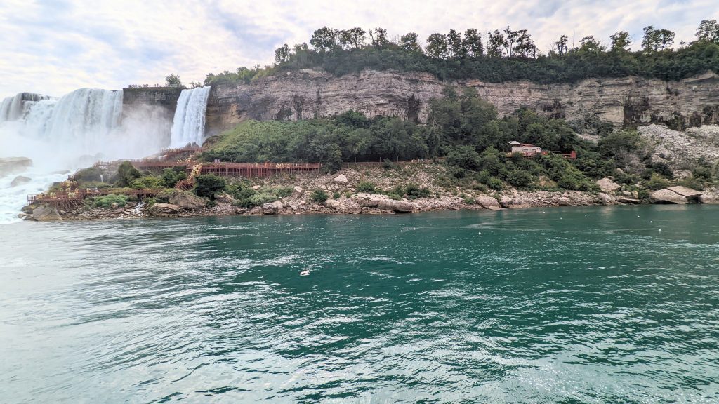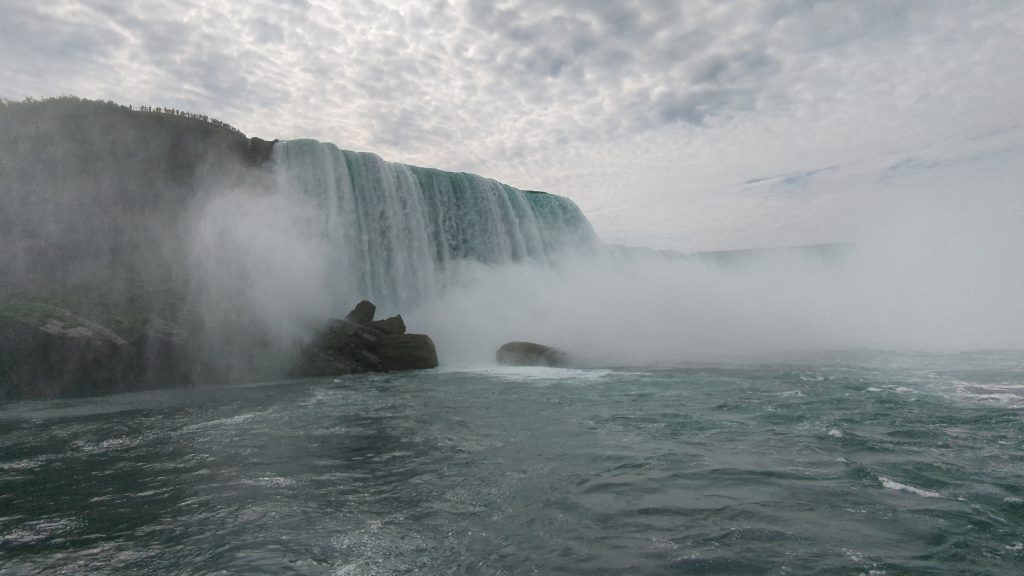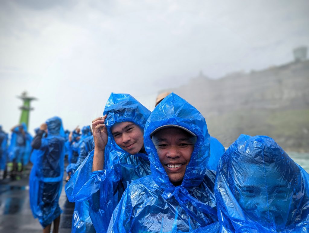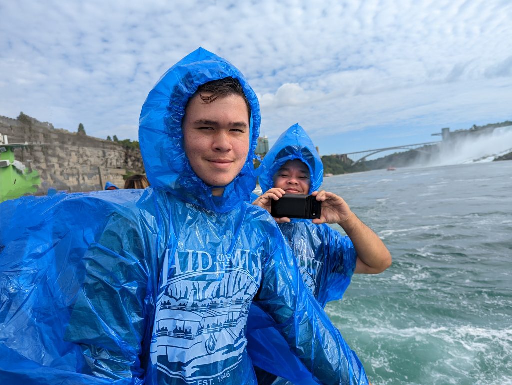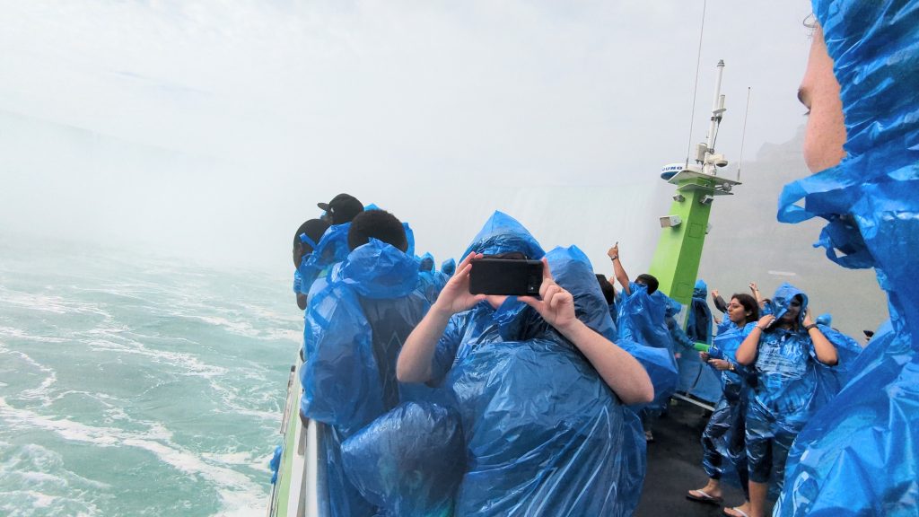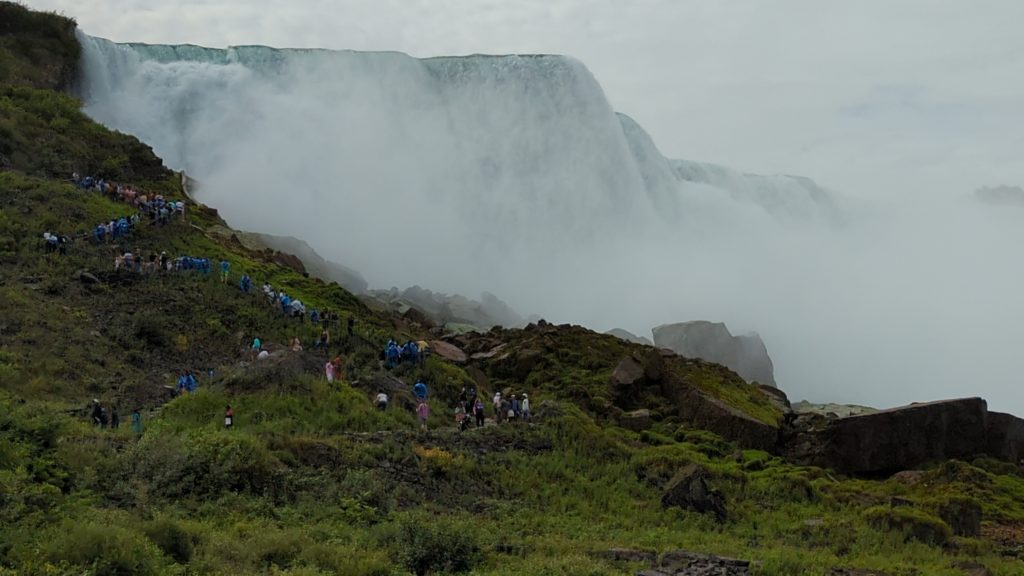 We took a ride on the Maid of the Mist. It was such as magnificent view of the many Falls. We could also see the Canadian version of the same boat. We wore blue ponchos and they wore red ponchos.