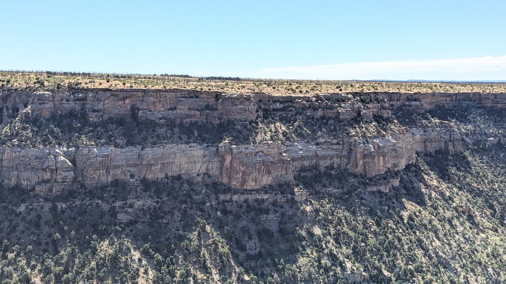 We chose a trail that promised sights of animals. We didn’t see any, but the canyon was beautiful. We could see Pueblo cave dwellings from so many locations.