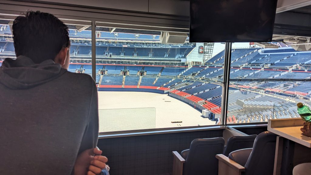The Broncos do not own the stadium. They pay to use it. Their training facilities are not at this location. The stadium is funded by people renting out the facilities. They have weddings, proms, and many other events. While we were there, they were preparing for a concert.