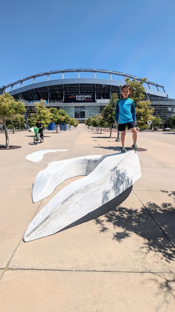They commissioned artists to create sculptures. This artist envisioned an athlete who lost against the Broncos. He threw off pieces of his gear as her left the area.
