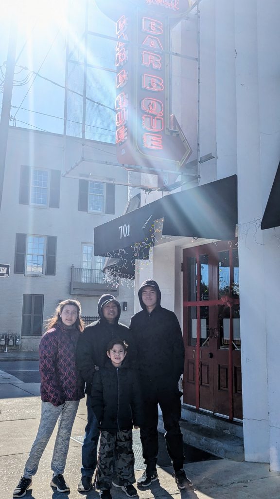 It was good. They only had one BBQ sauce, and they didn’t have fries. I’ve never been to a BBQ restaurant that has catfish, but maybe it is the [Mobile] Alabama way…. Anna said he was the best she’s had!!