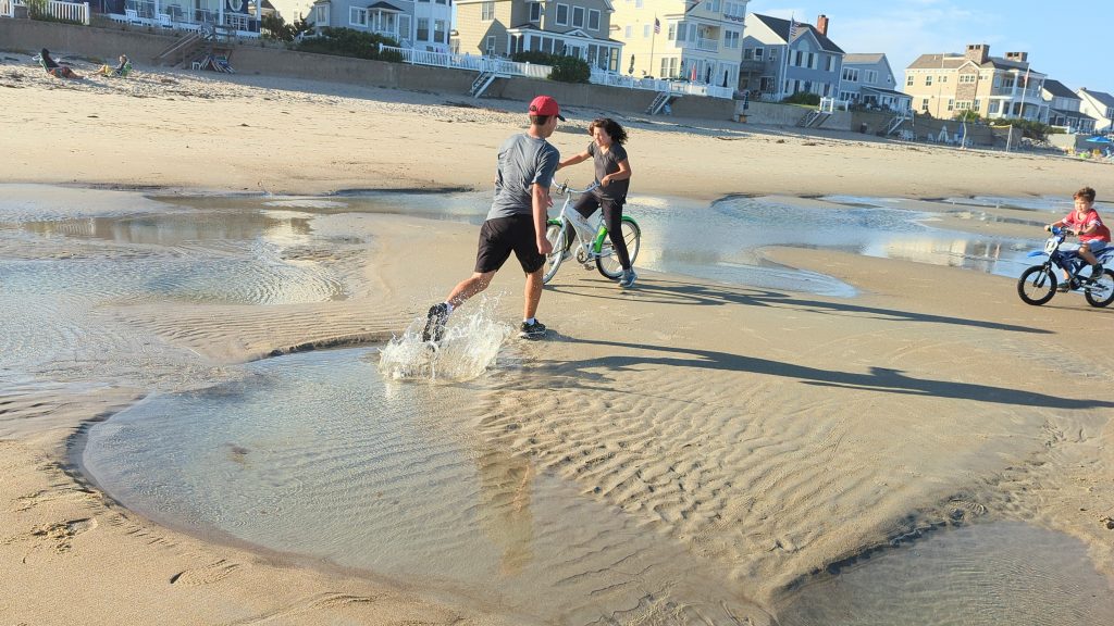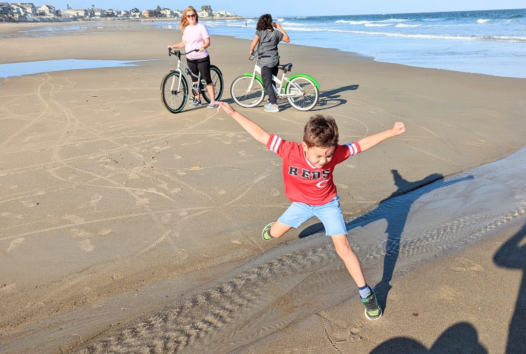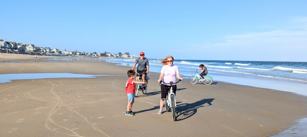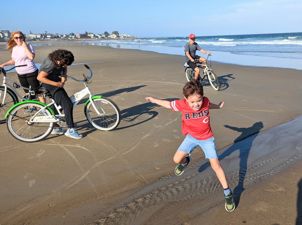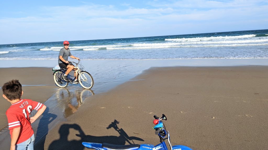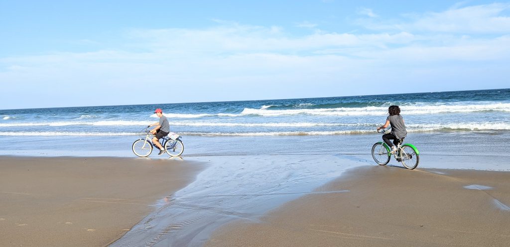 We took a bike ride to the beach and decided to take a ride on the beach. Most of us got our feet wet 😬.