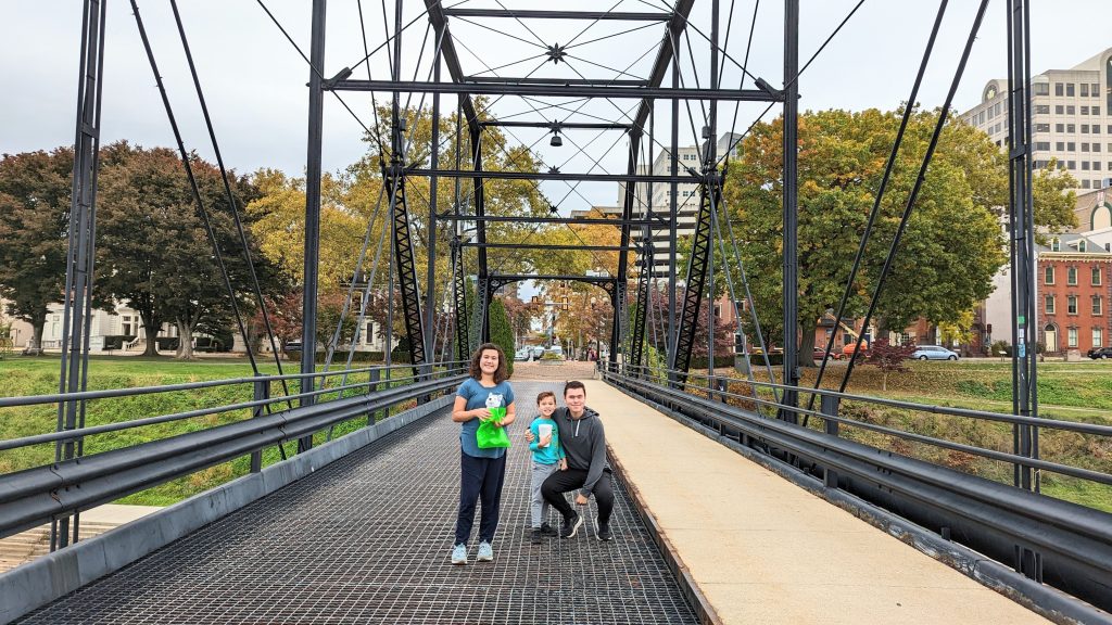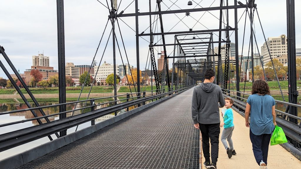 We walked around downtown and enjoyed the beautiful area on the Susquehanna River. They had a pedestrian bridge and an art museum for Anna.