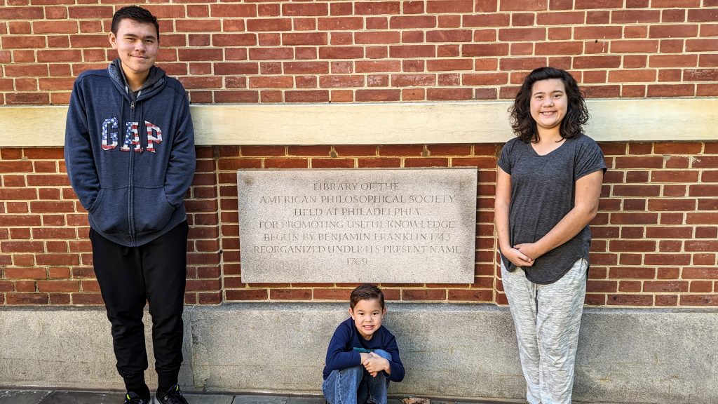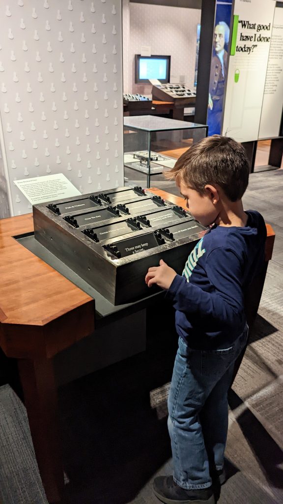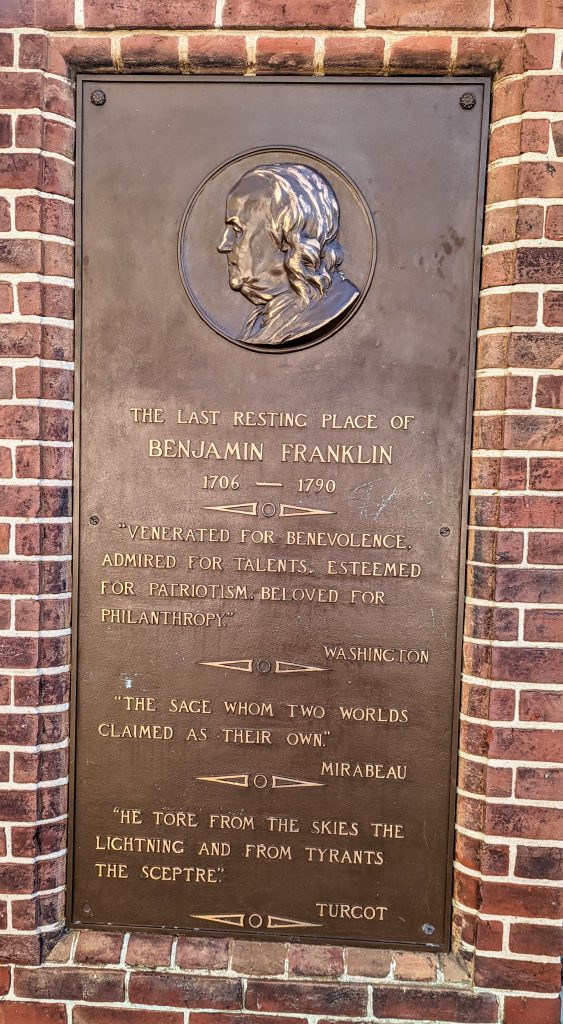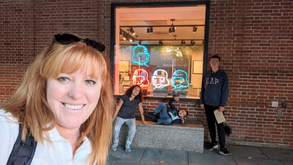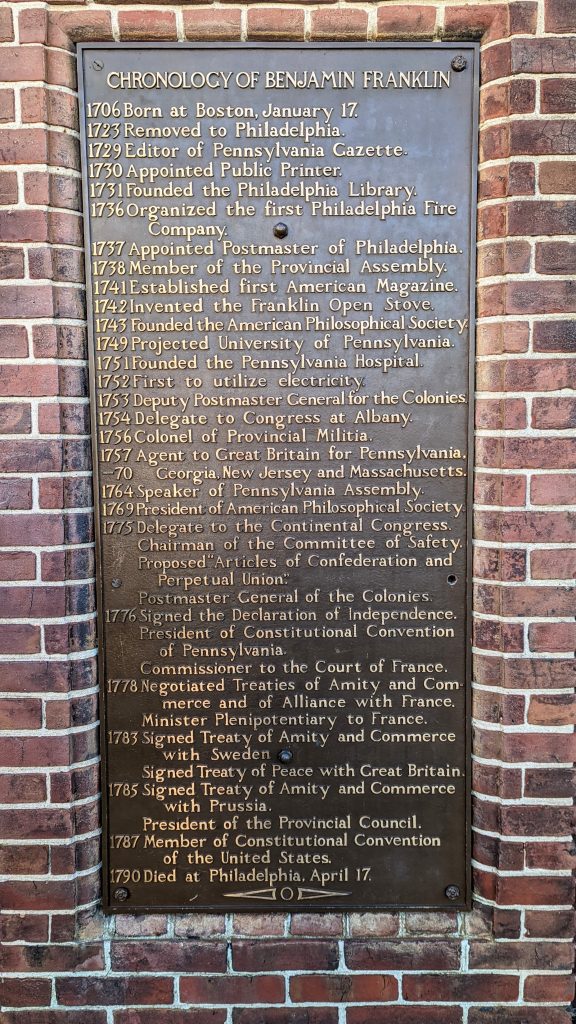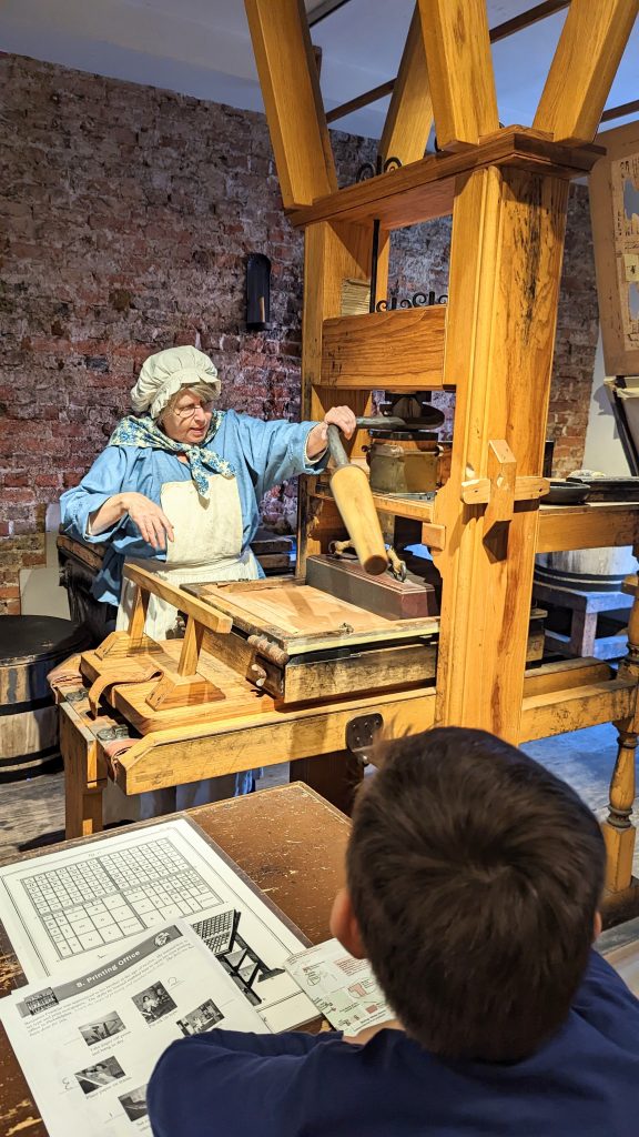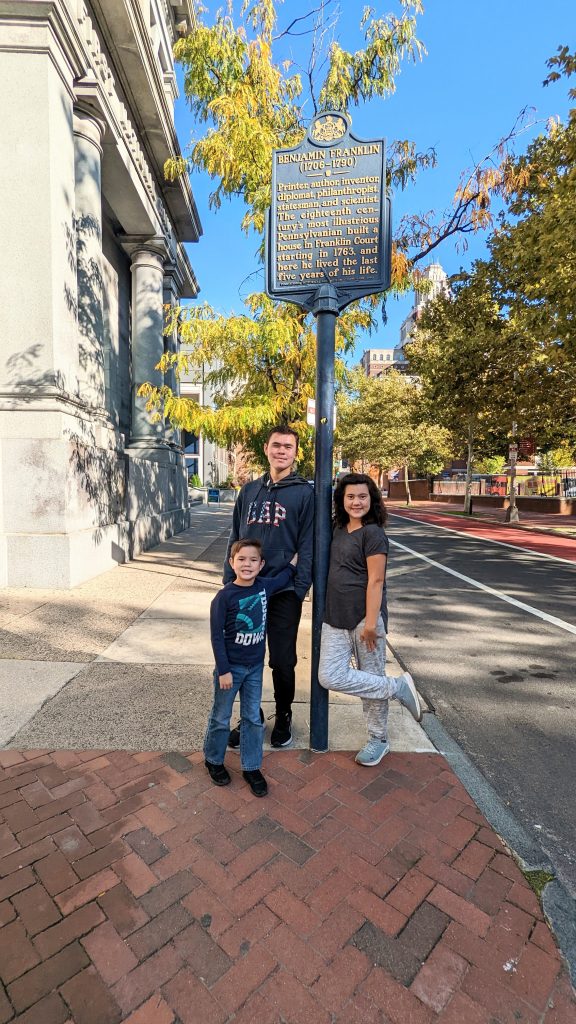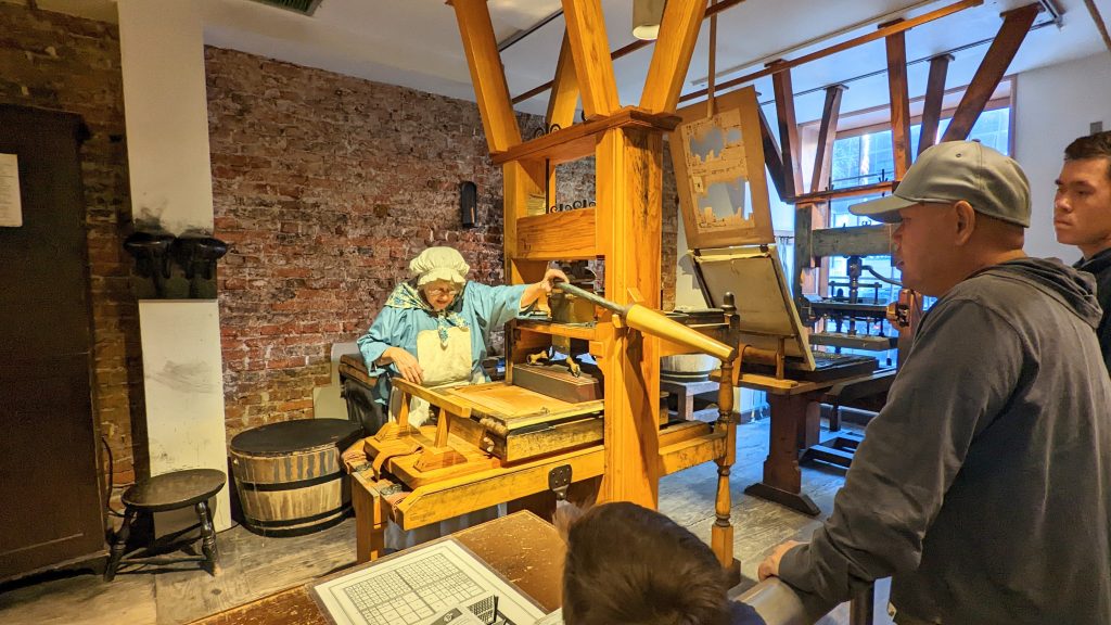 We visited the Benjamin Franklin museum and area where he lived. His house does not remain there anymore. They also have an exact replica of the printing press; we saw a great demonstration!