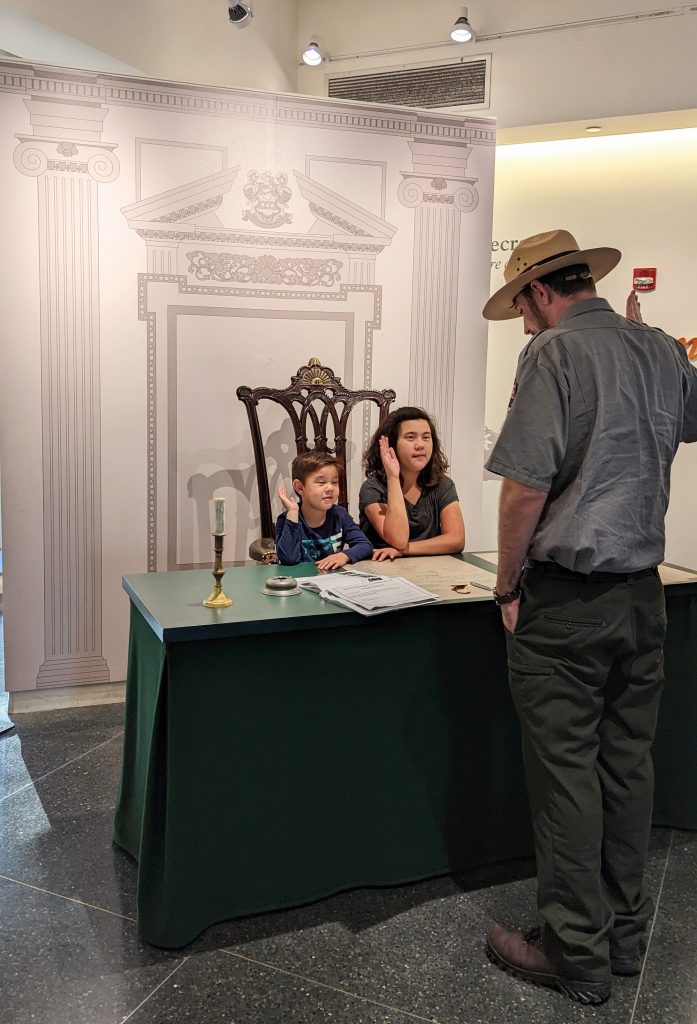 We saw the Liberty Bell ๐. The kids were disappointed to find that Davy Crockett did not fix the crack in the Liberty Bell. ๐