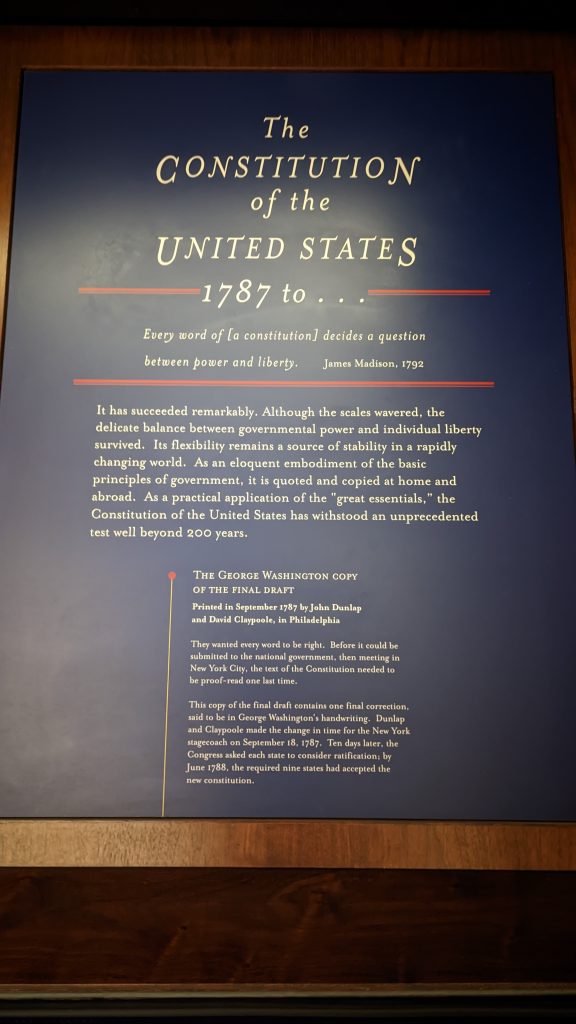 We saw the archived documents: Declaration of Independence, Articles of Confederation, and US Constitution. Seeing those special documents was quite the treat.