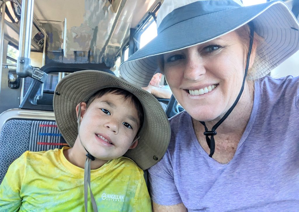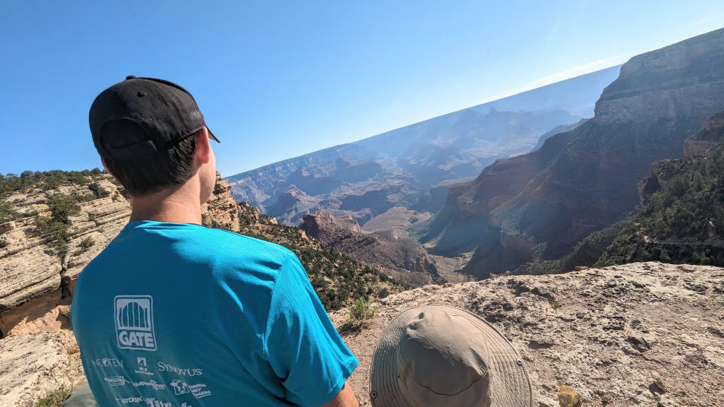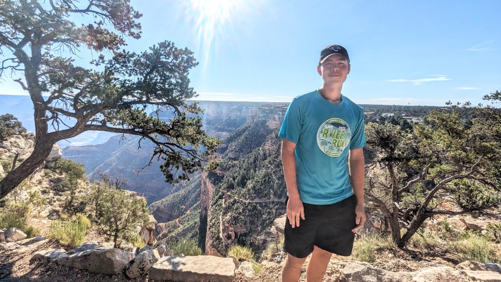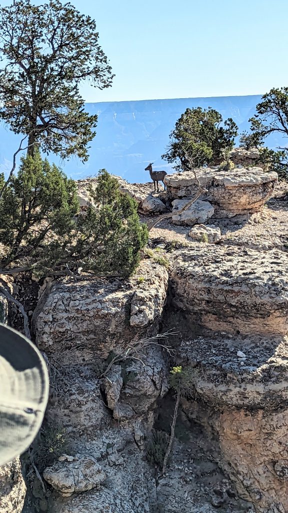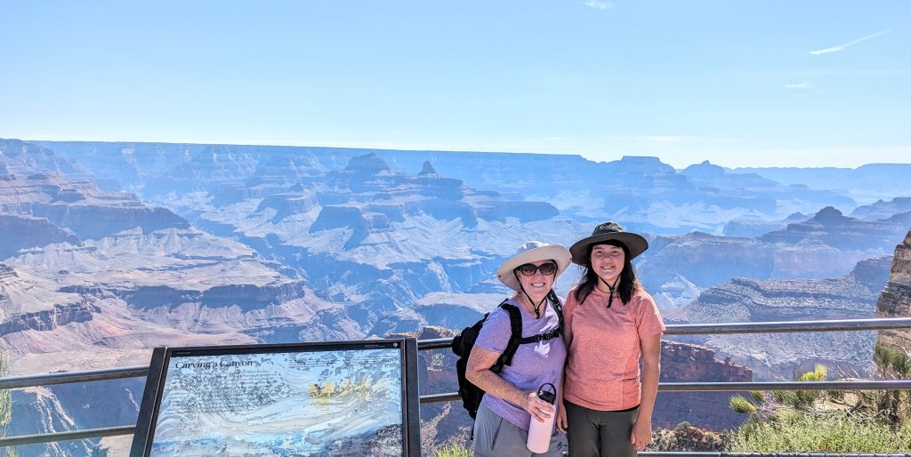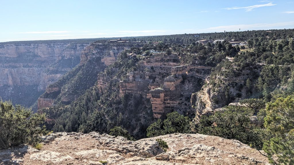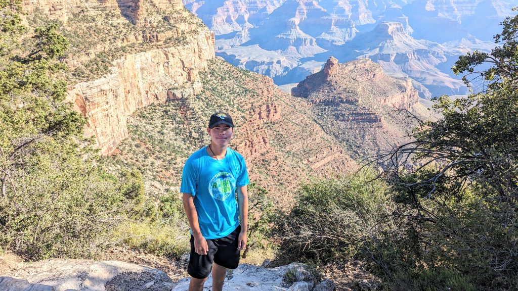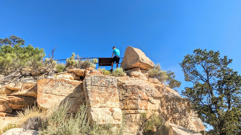 The kids and I did a portion of the trail along the Rim. We had the music blasting from the backpack and saw some amazing views. The combined walk was about 2.4 miles. Really, the limit is 2 miles if I want to keep everyone happy. ๐. The recommendation is to be off of the trails by 10am because of the heat. We started out early, and it was pretty manageable. It definitely feels better than our time in Arizona two weeks ago.