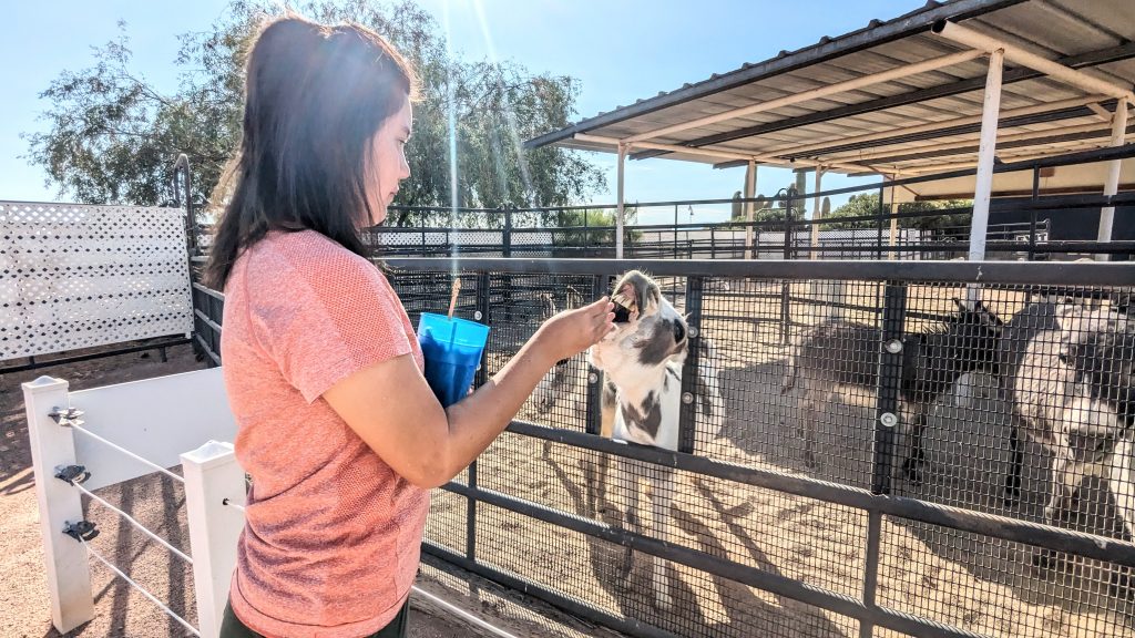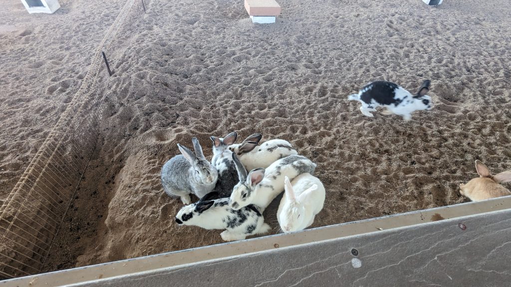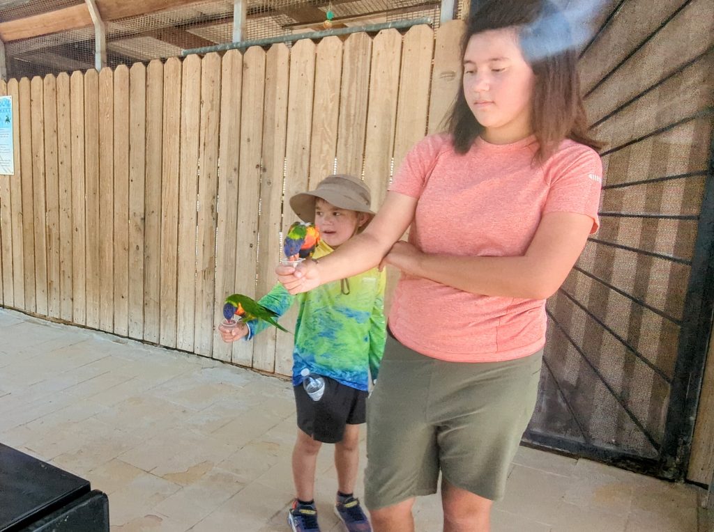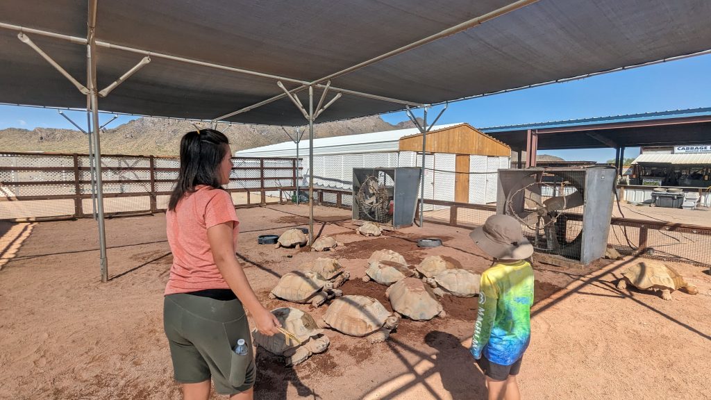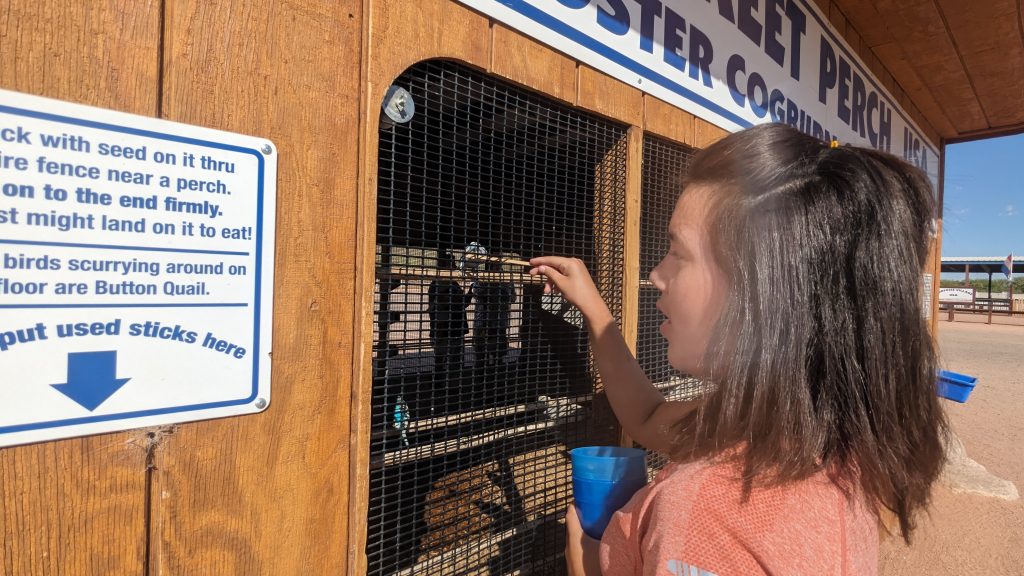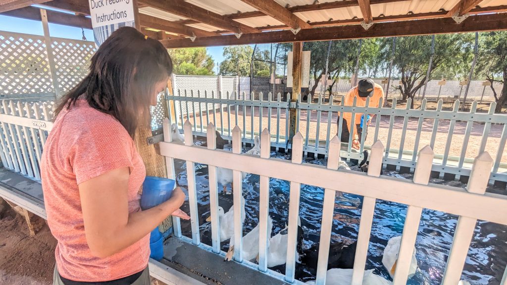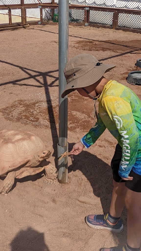 Right outside of the state park where we stayed was this really interesting petting zoo. It was sooo well organized. At the entrance, your were given two plastic cups: one cup full of feed for the big animals, the other cup had one piece of asparagus for the tortoise, one stick with bird seed for the bird cage, one small tub of sugar water for the larakeets, and the coins for the ducks, rabbits, and chicken food dispensers.
