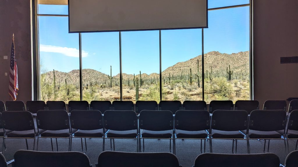 They had a video that I thought would teach us about the cactus. However, it discussed the native Americans and their spirituality. However, at the end, the screen went up and the outside scene was sweet.