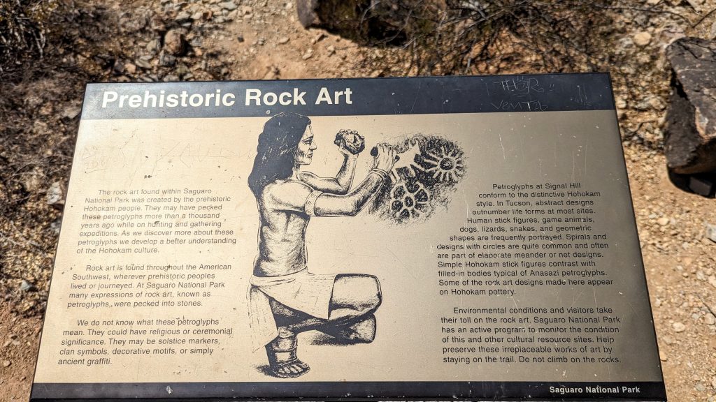 We should have been there here when the visitor center opened. It was too hot to walk around much, but they had a great drive through for viewing. It was about 5 miles and unpaved. We stopped at a place to see petroglyphs in the stone. I don’t agree with some of the [science] when they start discussing the beginning of man and historical timelines, but the artifacts are undeniable.
