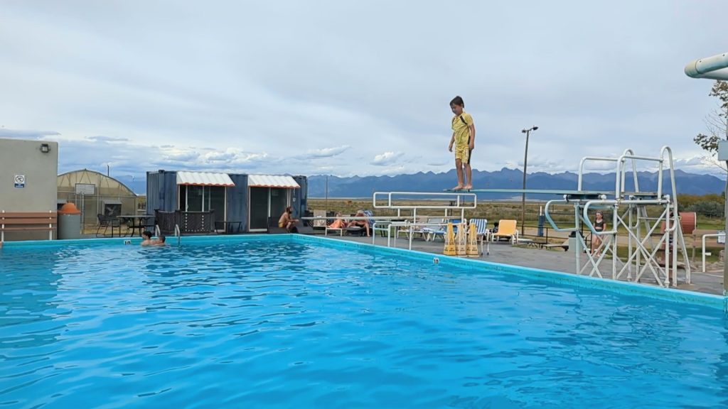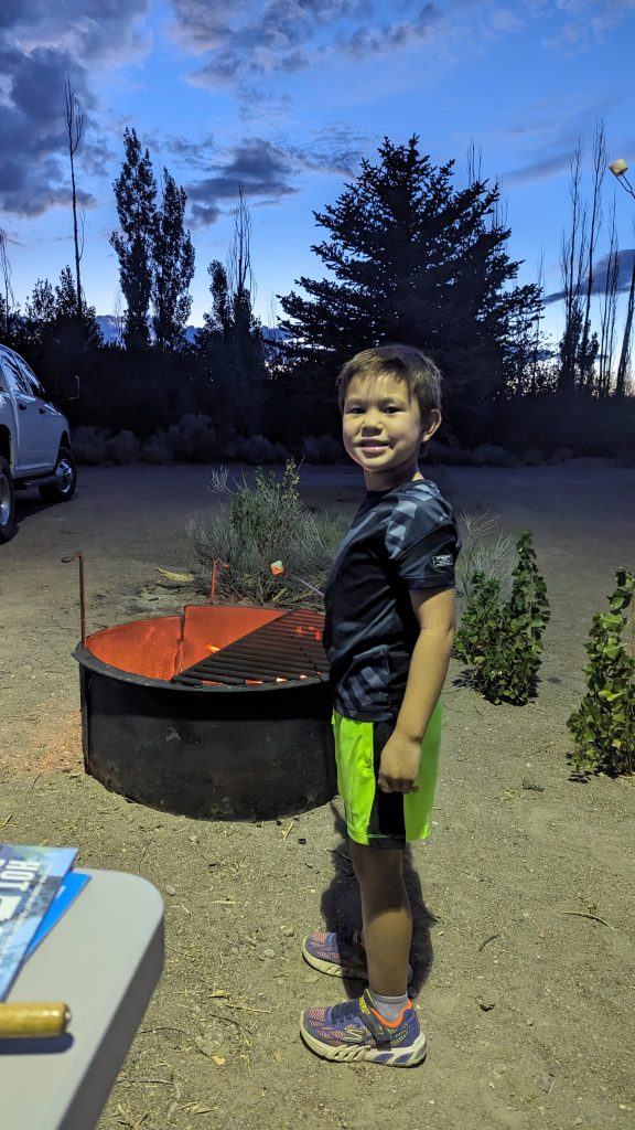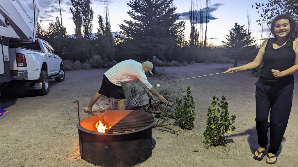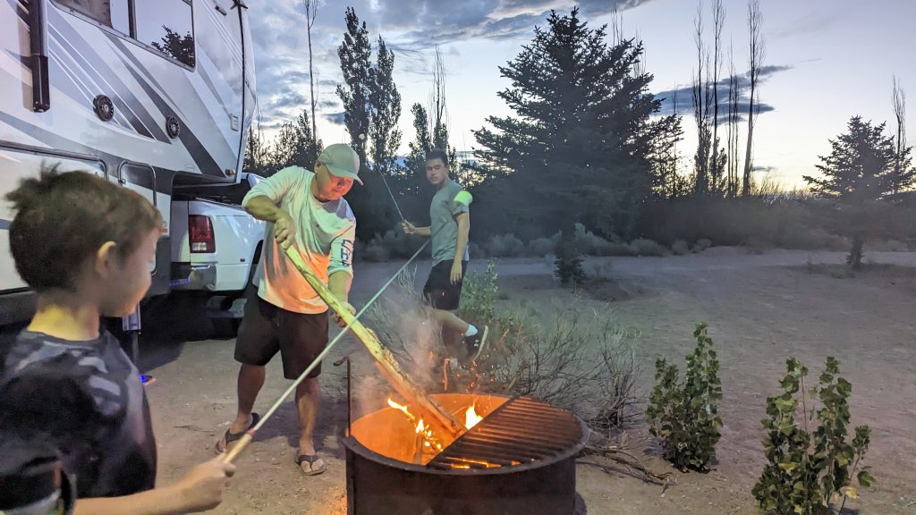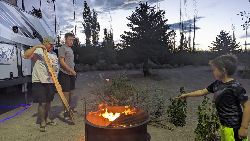 We only spent a few days here. They have a pool that is fed by hot mineral springs. Malachi had a great time there. We rented snowboards from here and were only about 35 minutes from the national park. The evenings were breezy and cool. It was our first real reprieve from the Southwest weather in a while. There were burn bans in almost every campsite that we’ve been in. And some only allowed gas fires, so our s’mores game has been limited…. We were glad to be able to have some smores at this site.