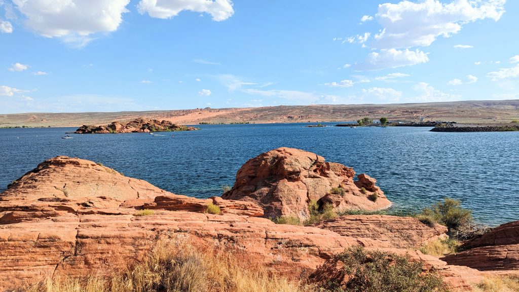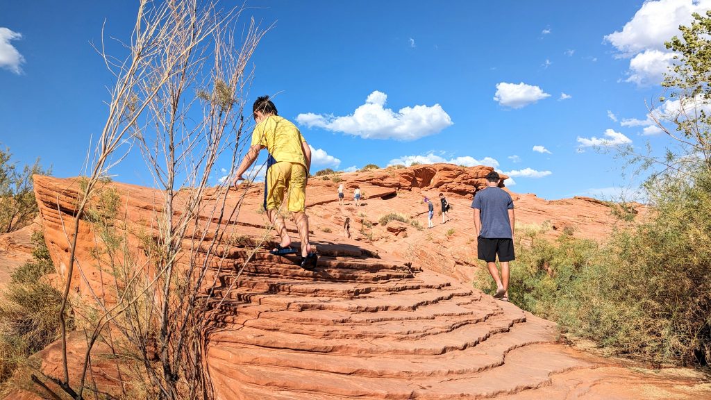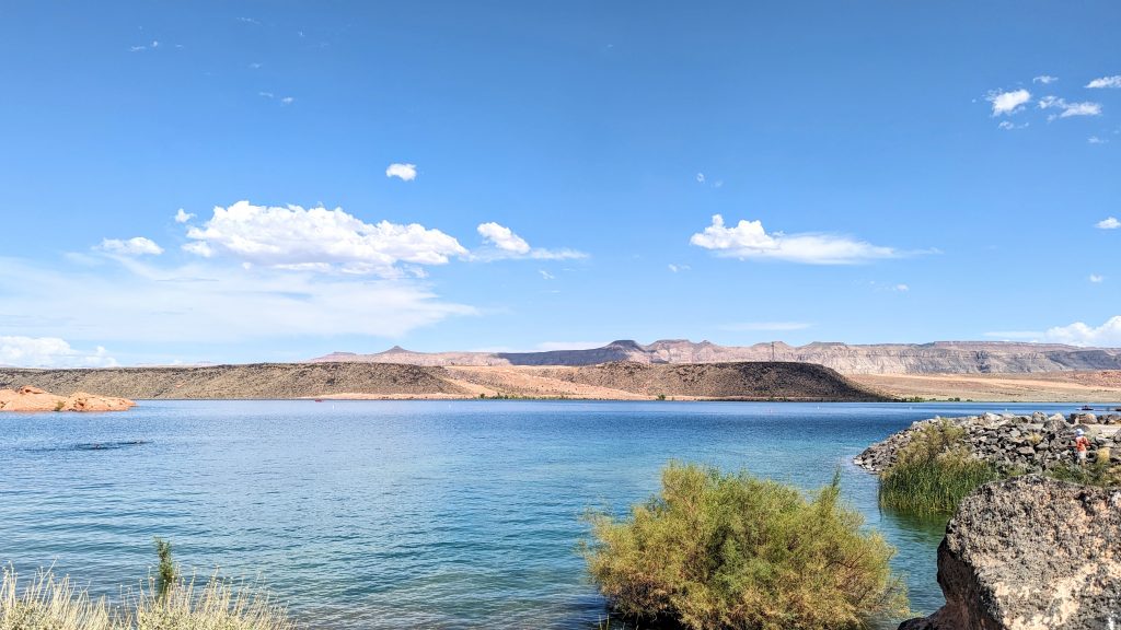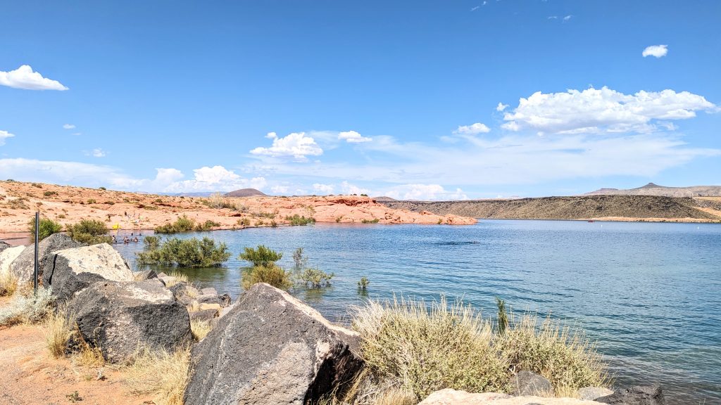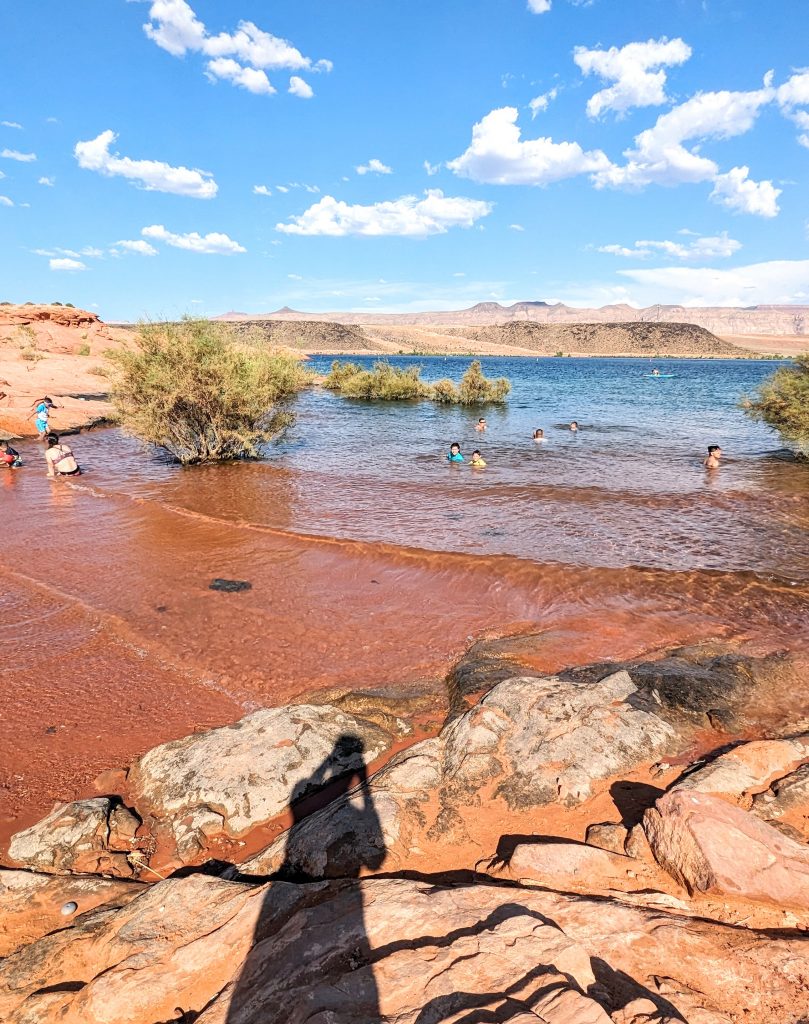 This reservoir in Hurricane, Utah was so refreshing. We were standing on sheets of mountain rock inside the water. The water was perfectly clear. The basin had some of that coral pink sand that we played on at the sand dunes. The big rock is for jumping. Pictures are hard when we’re playing in the water…