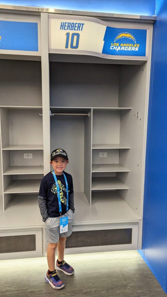 Malachi has come to cheer for the LA Chargers (because of their colors😂). His favorite player on the team is Allen. He requested a visit to the stadium. The boys did the all access tour. They even got to throw the ball on the field and visit the locker rooms.