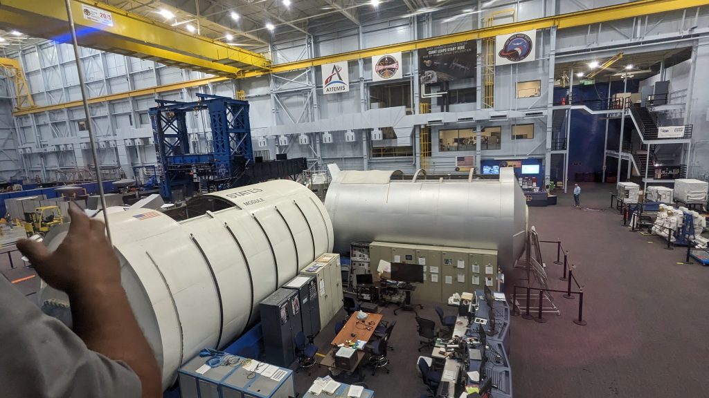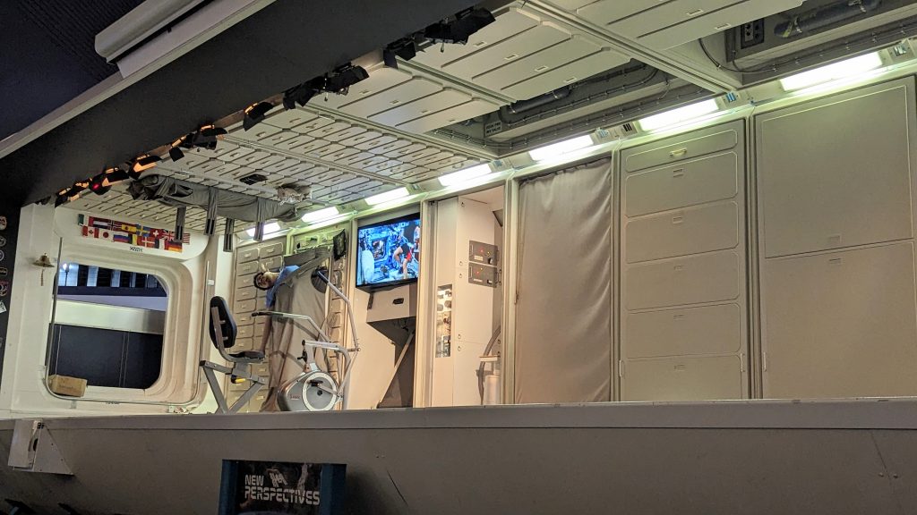 We rotat rode a tram over to the Astronaut Training Facility. Part of the facility is for preparing to live on the Space Station.