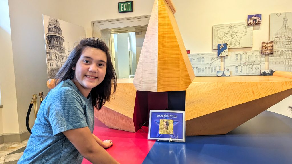 We started by visiting the Capitol Building. They have a great visitor center. Anna says with all of the exhibits, this state house has been her favorite. The Texas state building is 14 ft higher than our Nation’s capitol building!