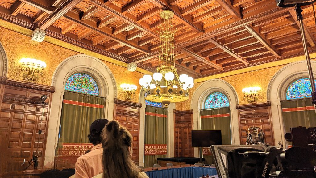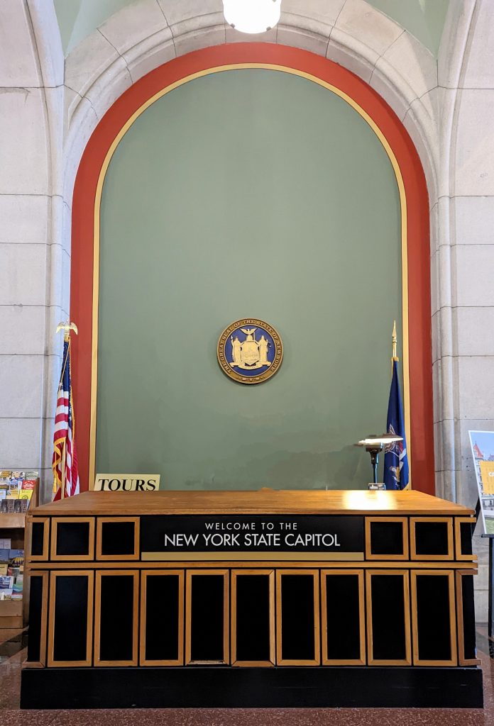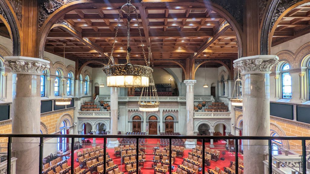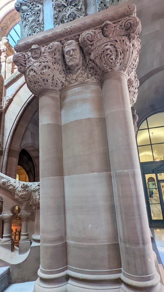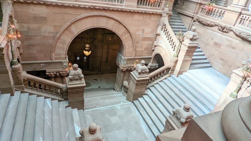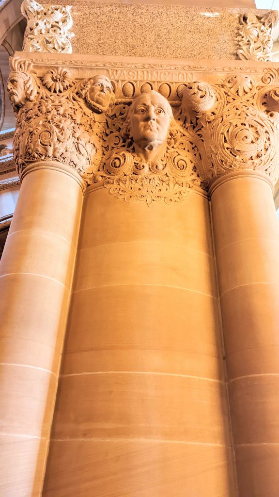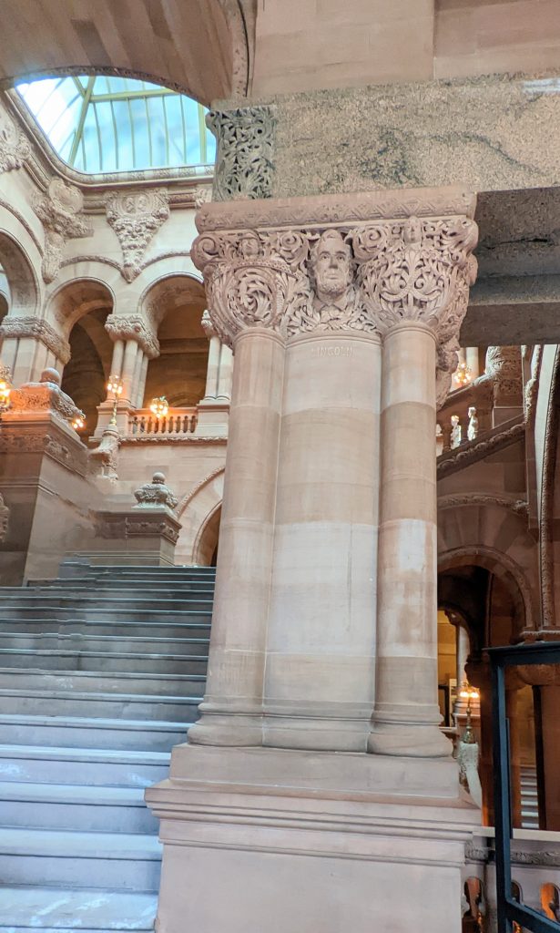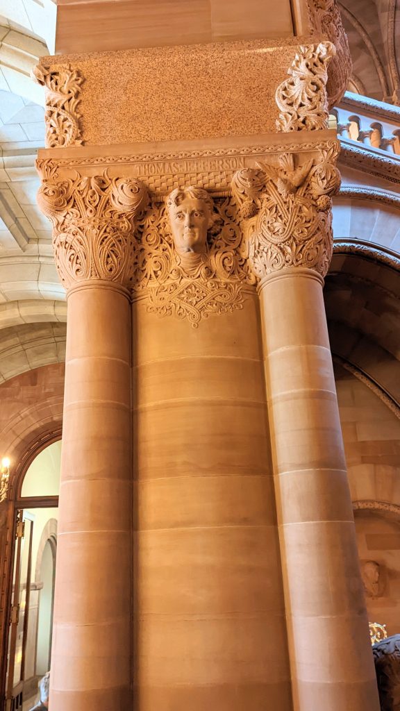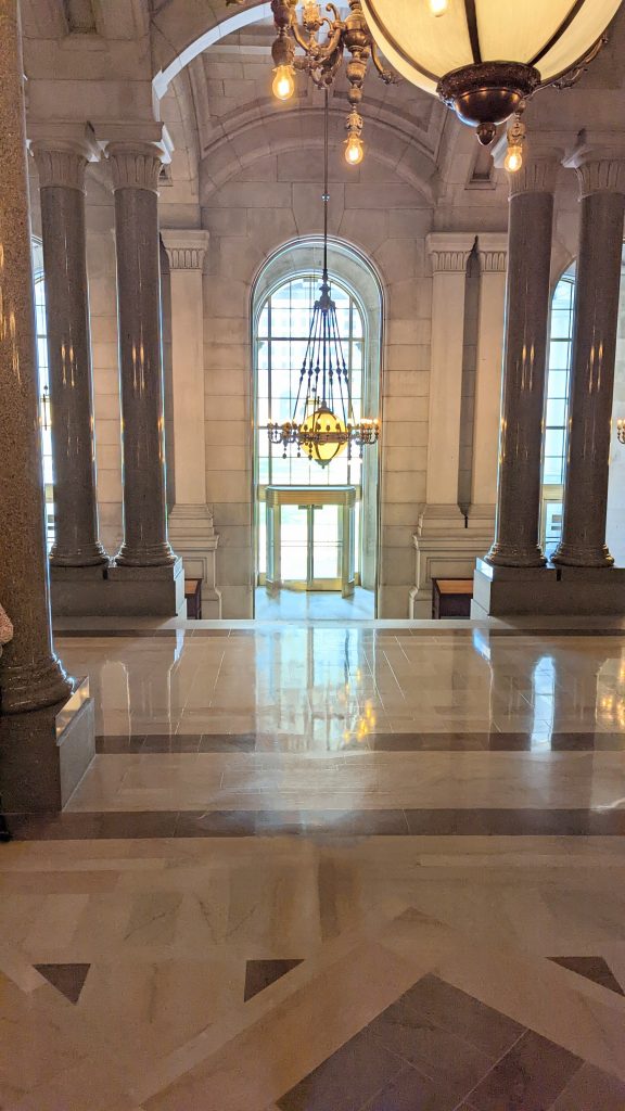 We visited the State House and Senate rooms. The walls are 14 carat gold-leaf in some places. There is a million dollar staircase in the middle with ornate carvings. The ceilings and walls were hand designed by various artists. There building is very ornate!