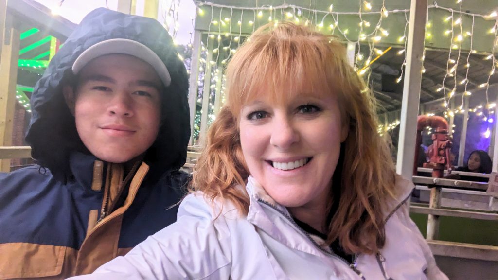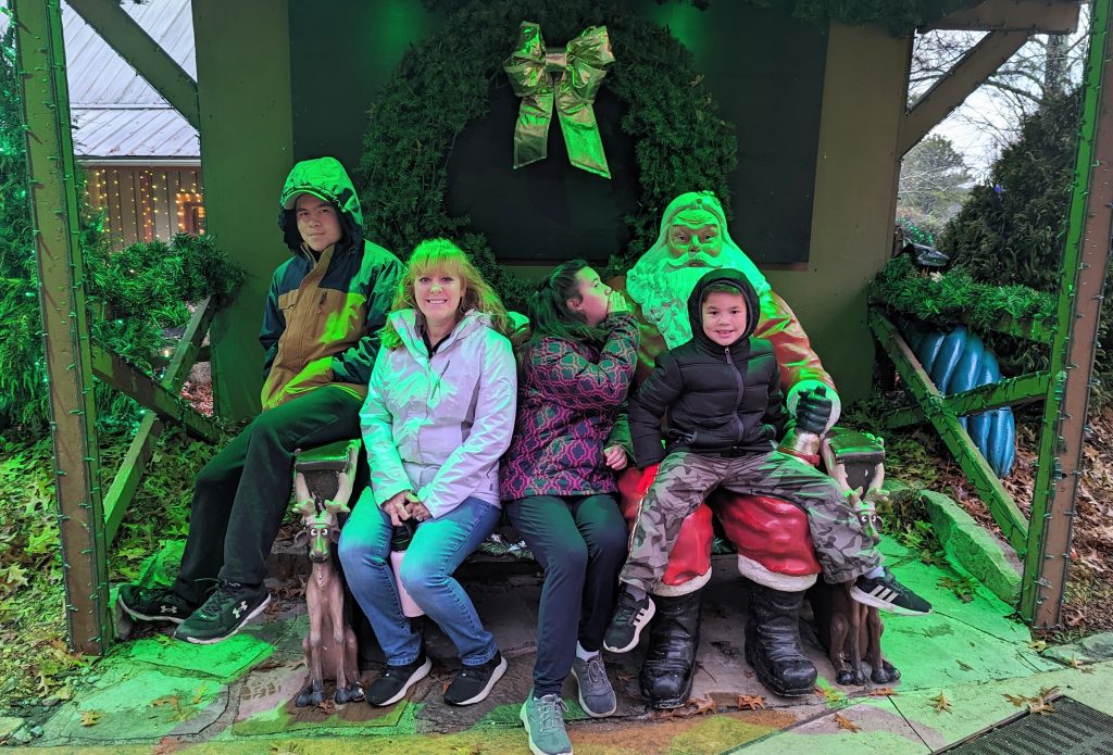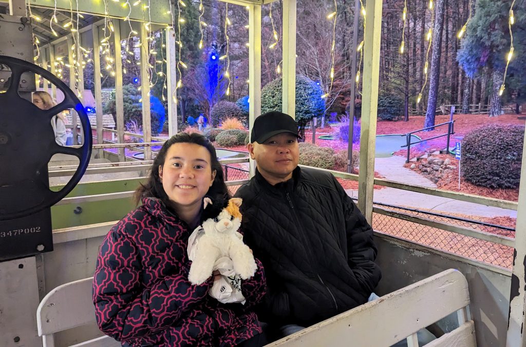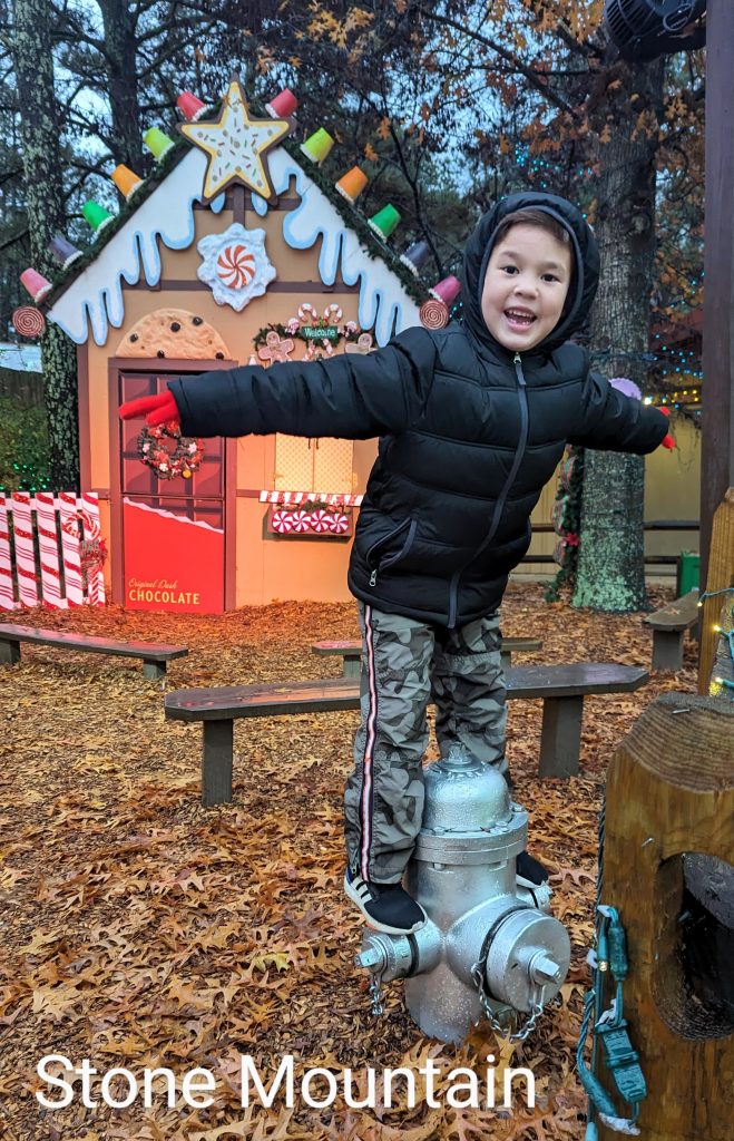 We bought tickets ahead of time… The festivities are only on the weekend. We had one day: Sunday. It was cold and rained alllll day. We went ahead and went later in the afternoon. It was fun. We rode the train, played mini golf and enjoyed the area. The light show got cancelled and the sky ride closed early ๐. But, we were about to go the next day for the Sky ride. It’s a cute set up.