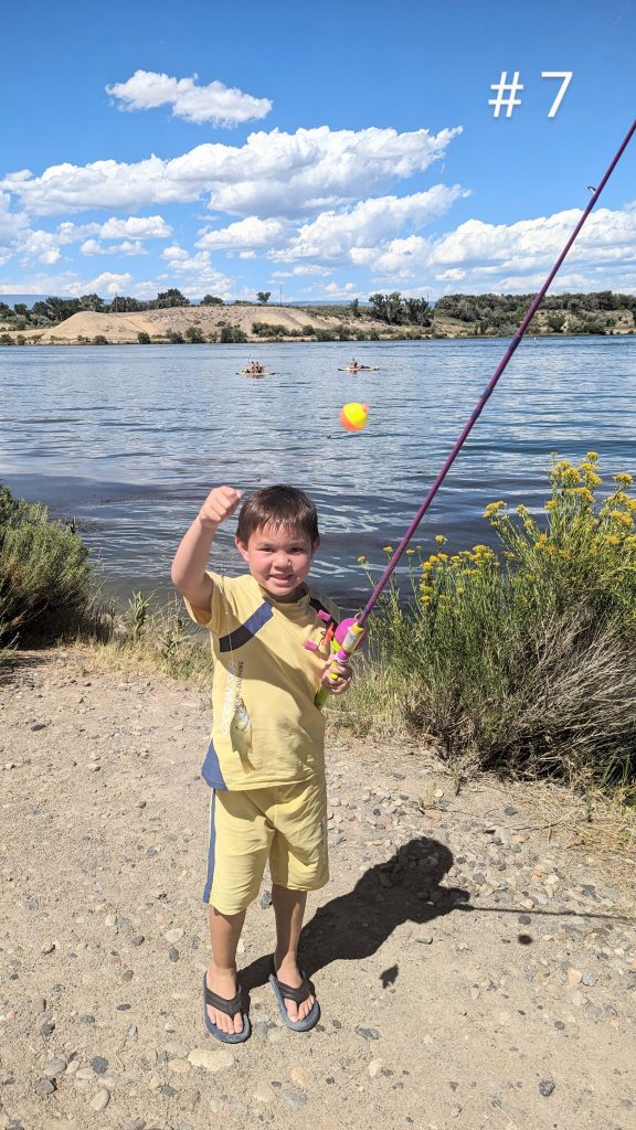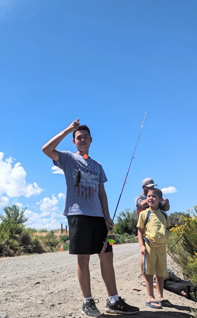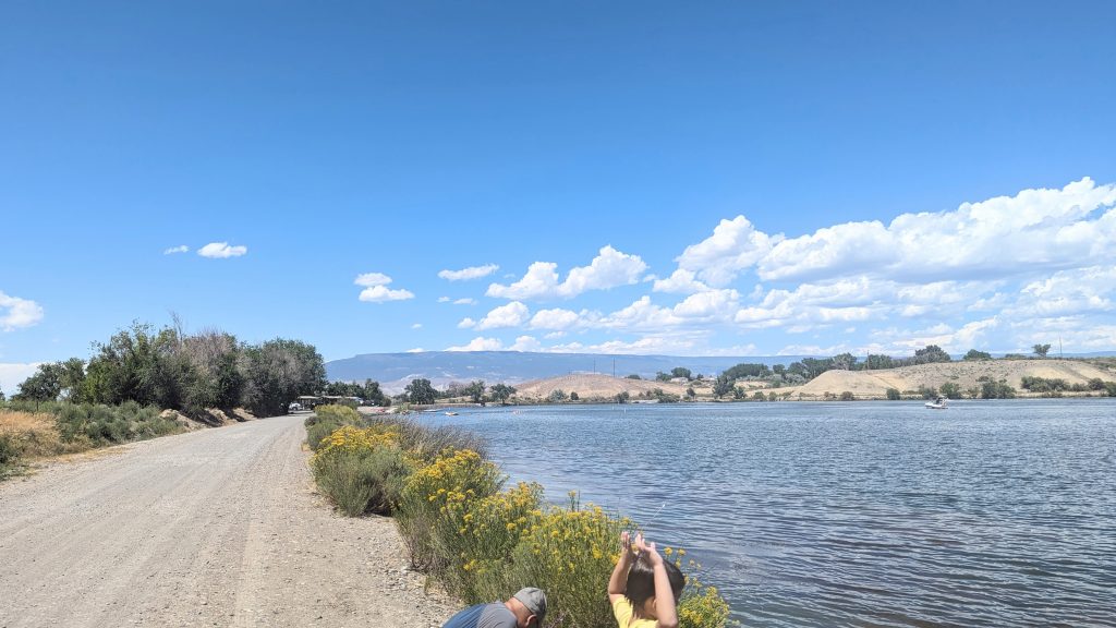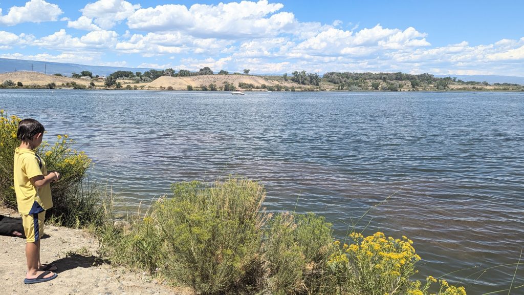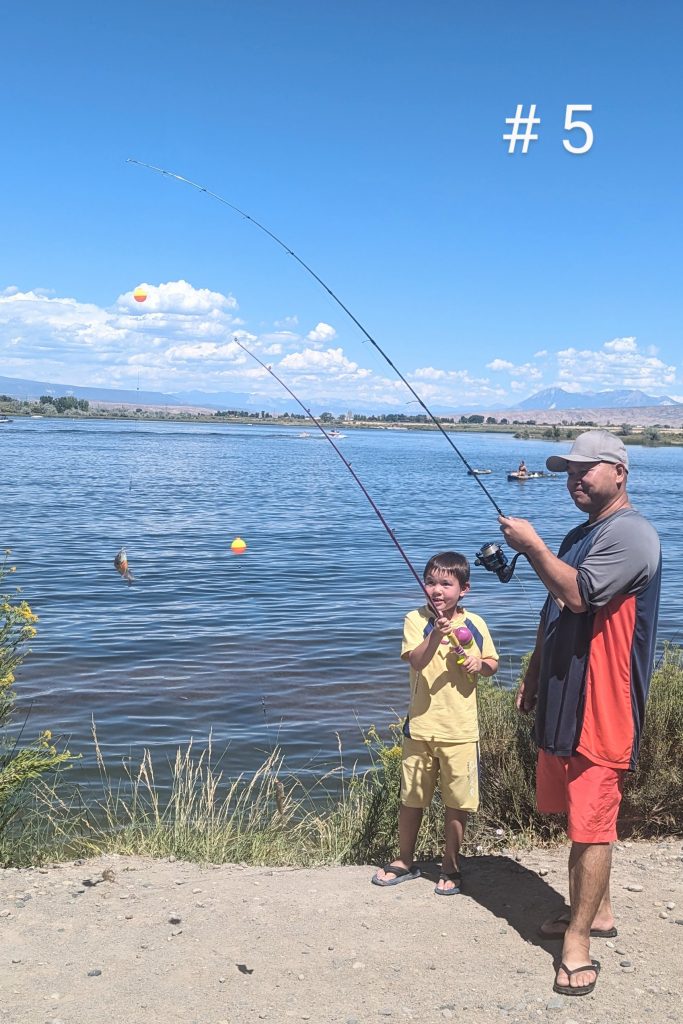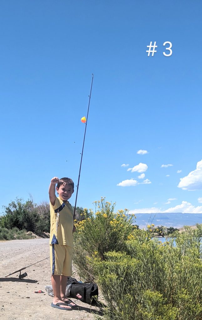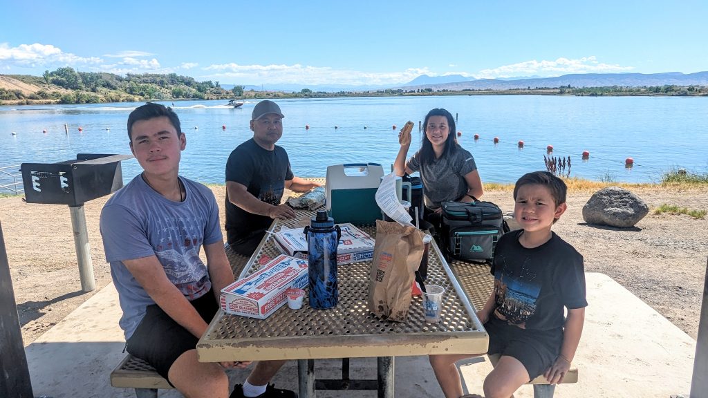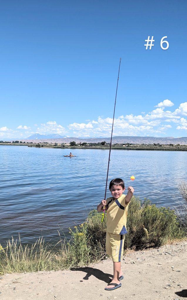 Colorado State Parks look really nice. We visited the reservoir after skydiving. Malachi was about to fish. Malachi and Anna played with the paddle board for a while. Caleb was tired (and a little nauseated) from the jump, so he just rested at the table.