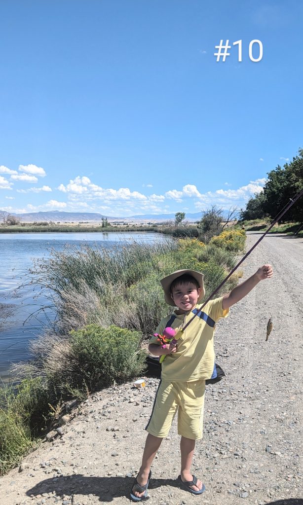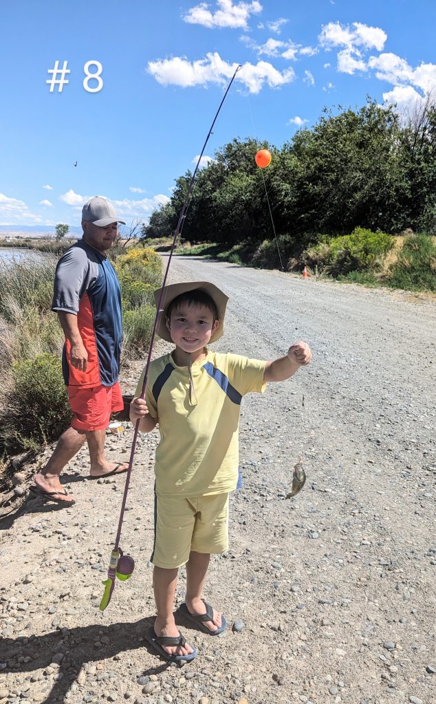 Malachi wanted pics of all of his catches. I missed two while I walked back you the truck to get sunscreen. The water was so clear that he could see them getting on the hook.