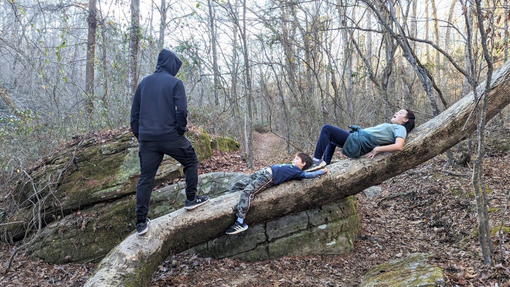 What a great 2 mile trail. It was full of fun places to jump, climb and traverse. The swinging bridge was a great addition.