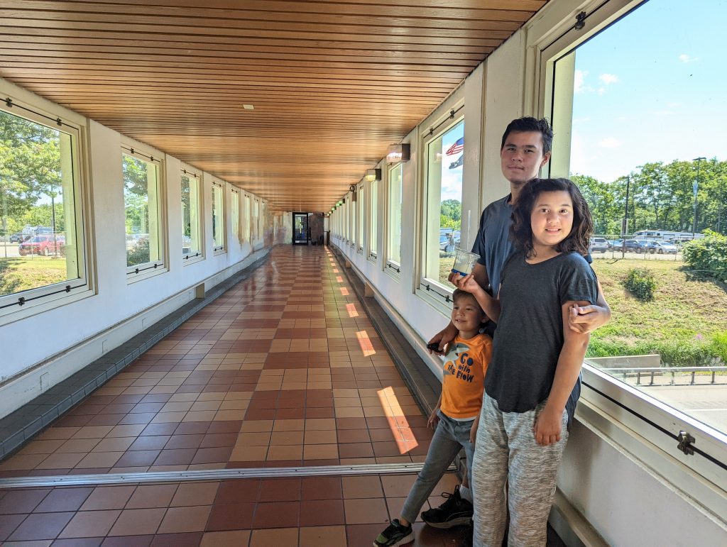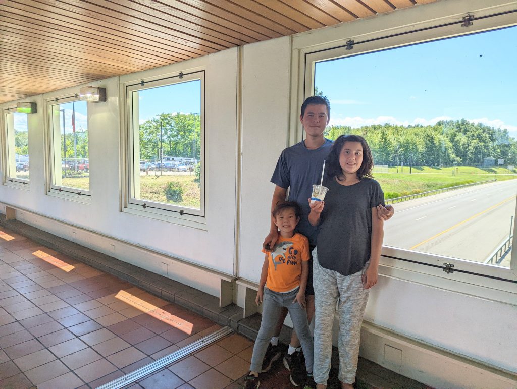 We were almost at our location, but we stopped at the information center and ‘mall food’ veranda. We walked along a long walkway over the highway.