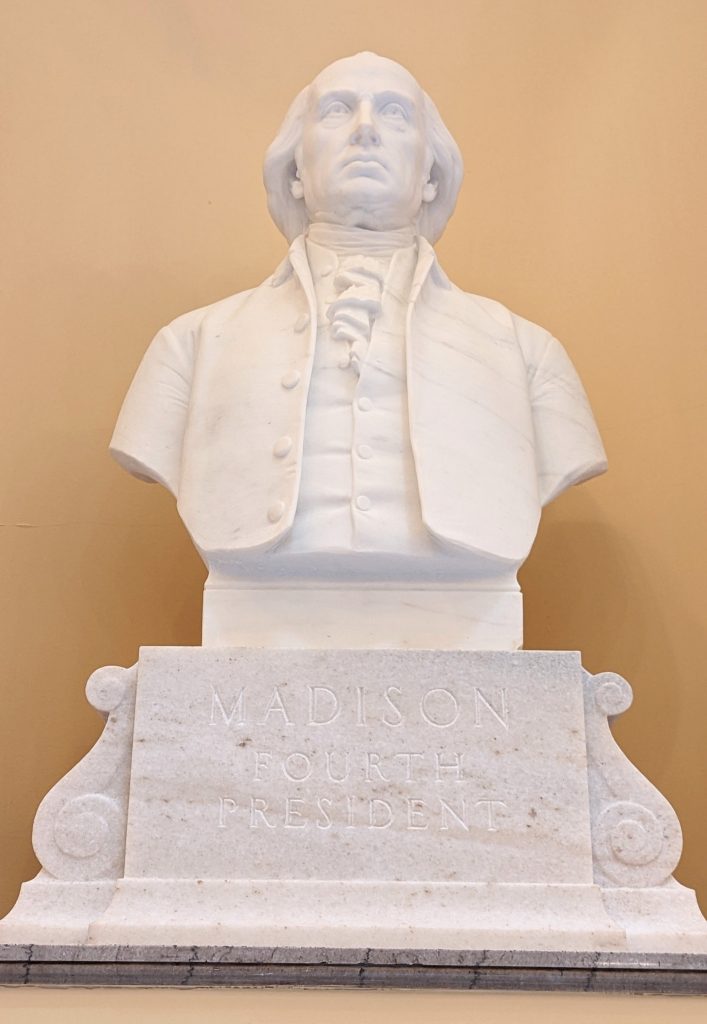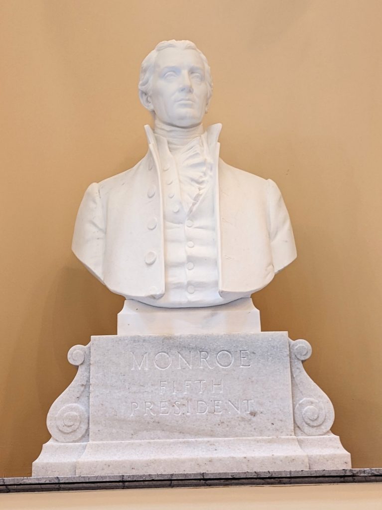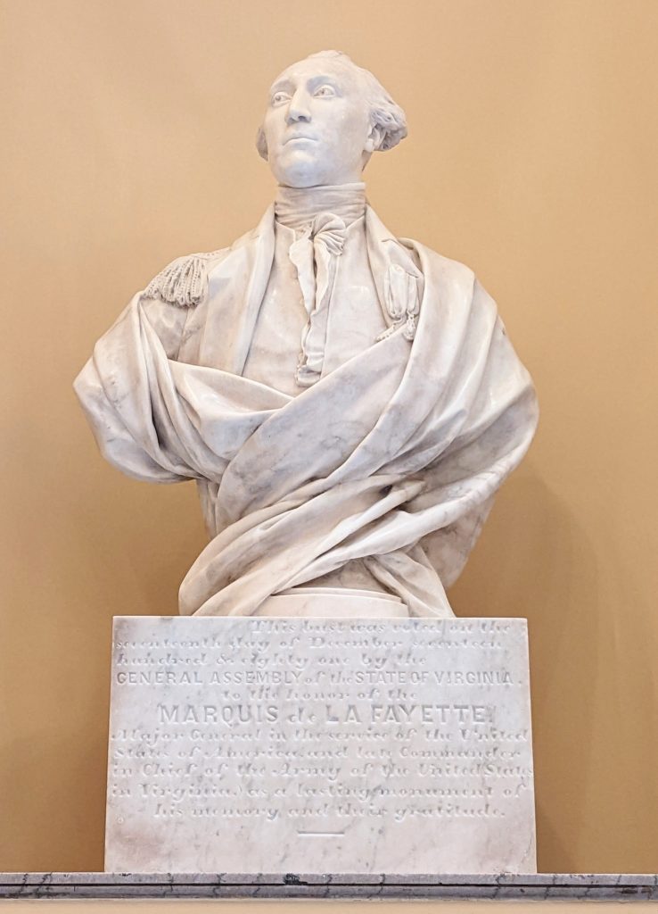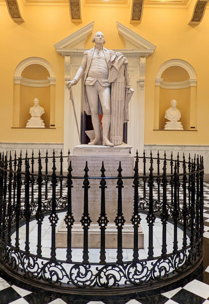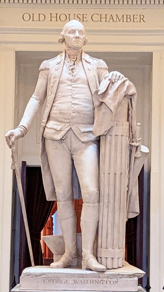 The statue of George Washington is an actual posed statue of him. It is true to life. He had a cast on to get all of his form and body. It was put in that building in 1799.