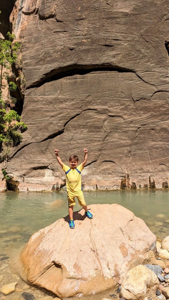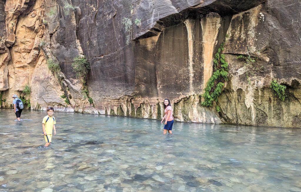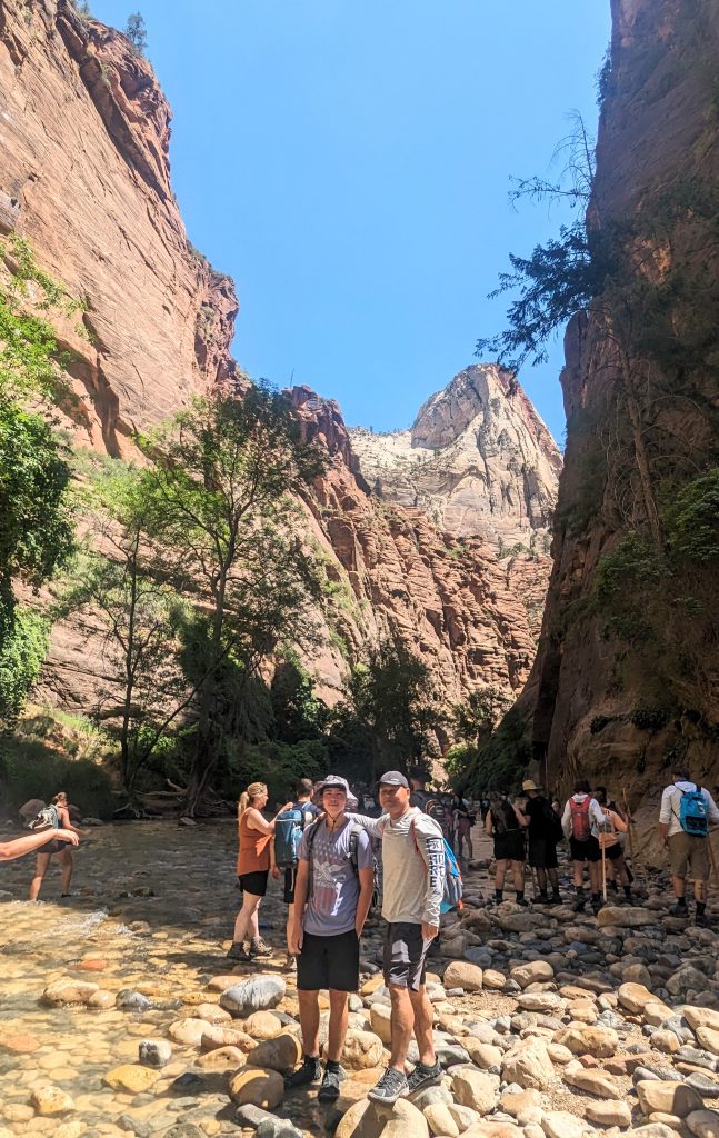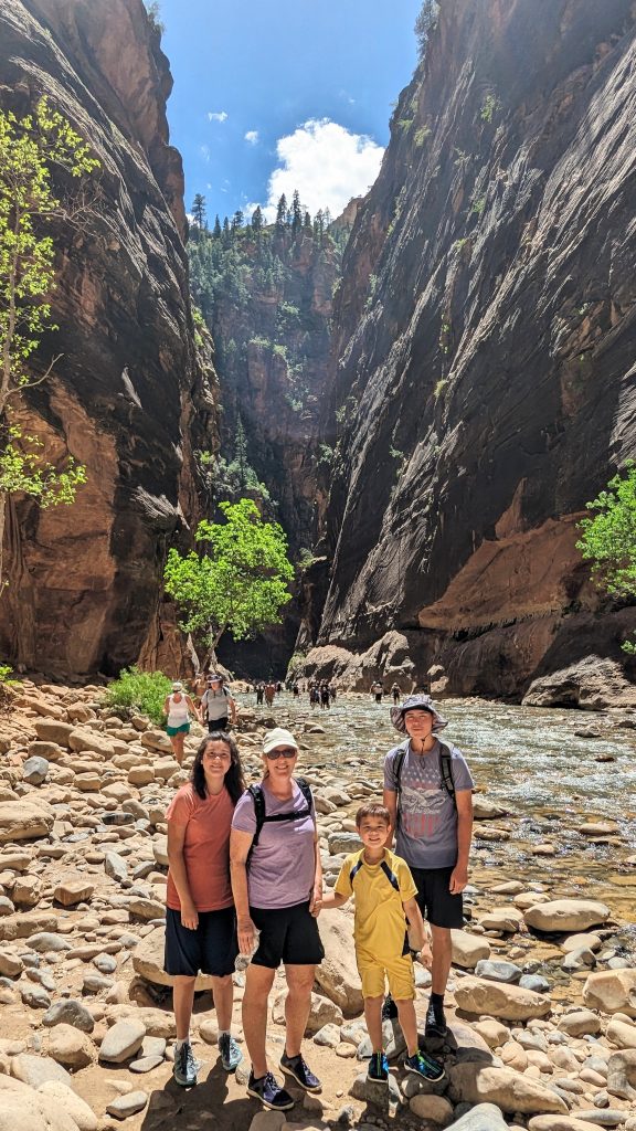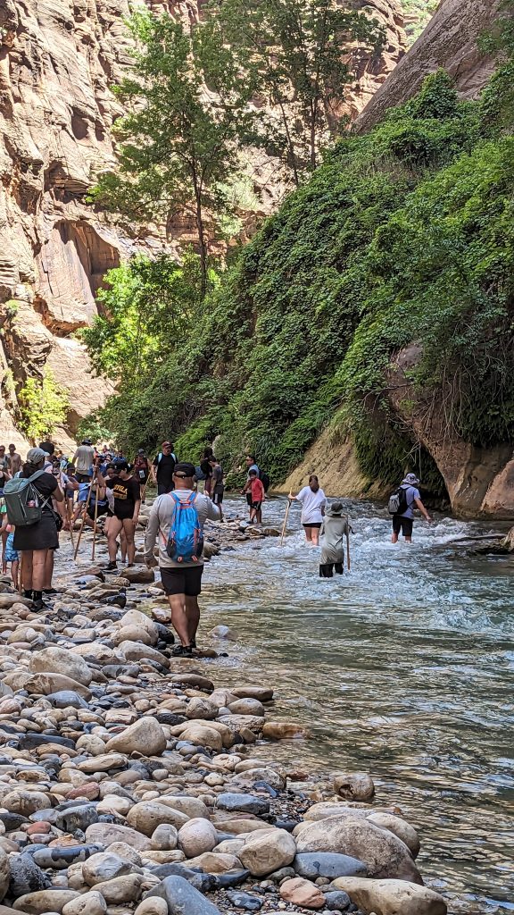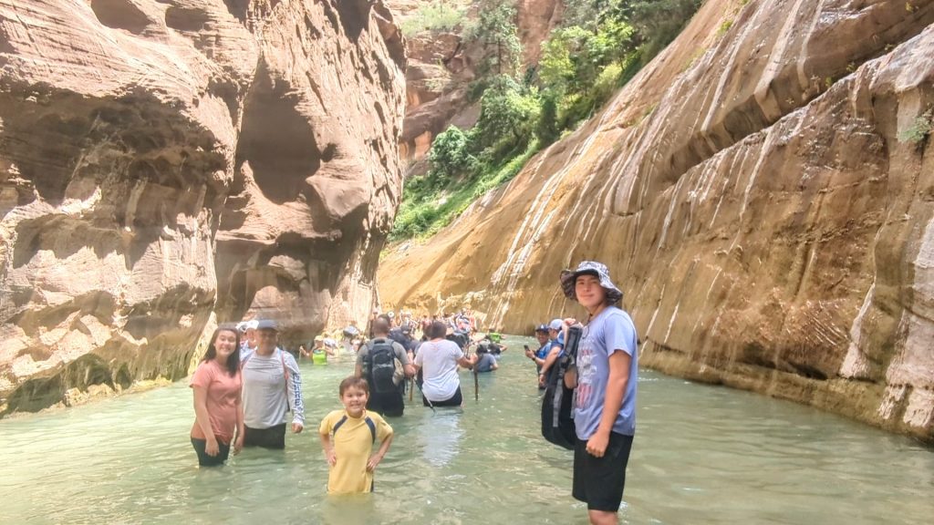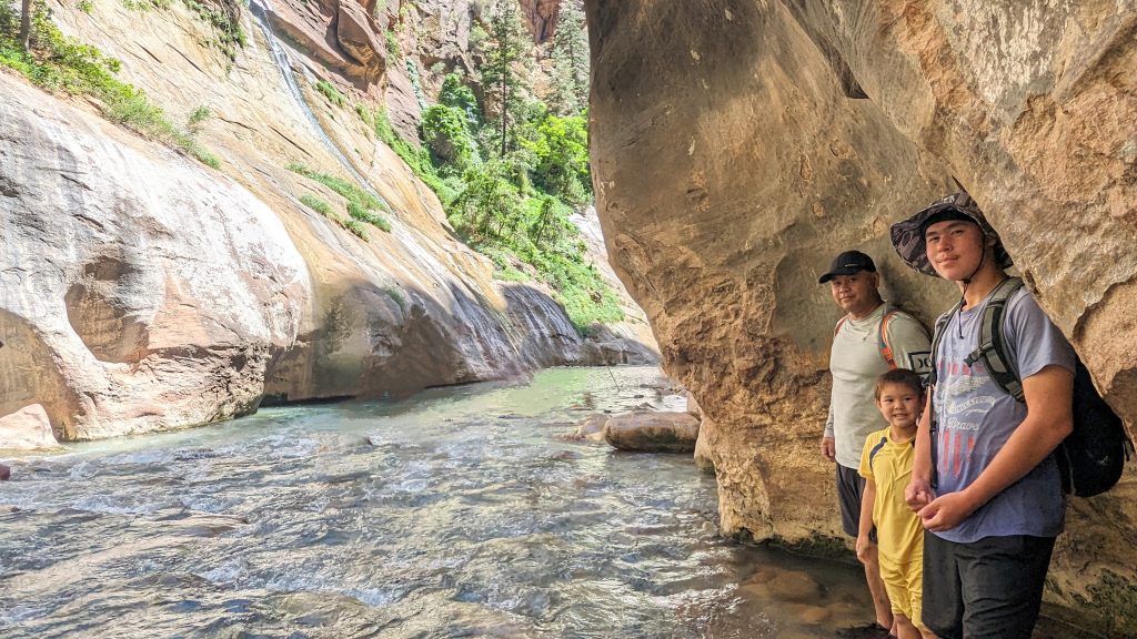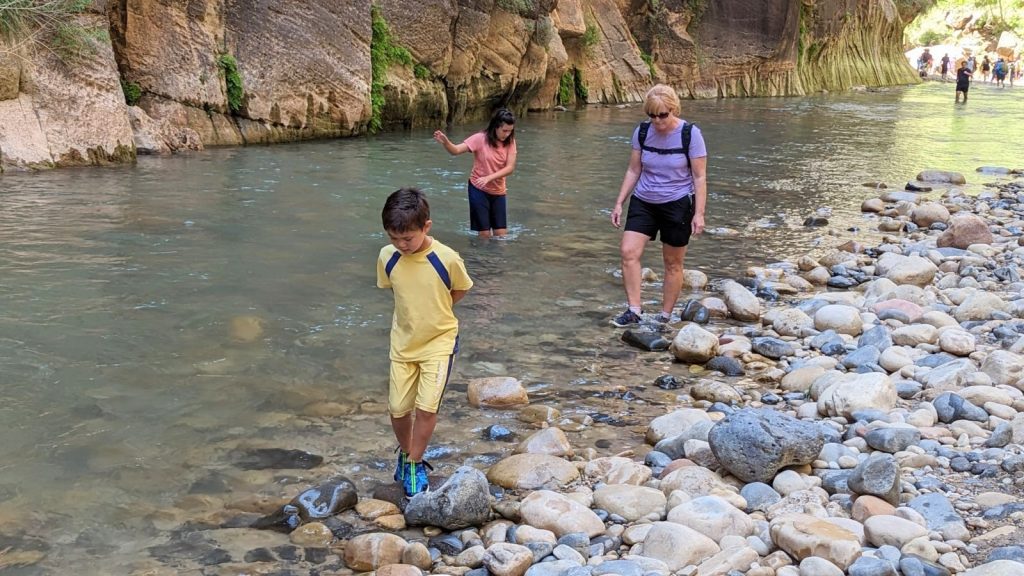 There were quite a few people entering and enjoying the Narrows. The plan was to go as a family, but Sean and Caleb would break off when the other two got tired.